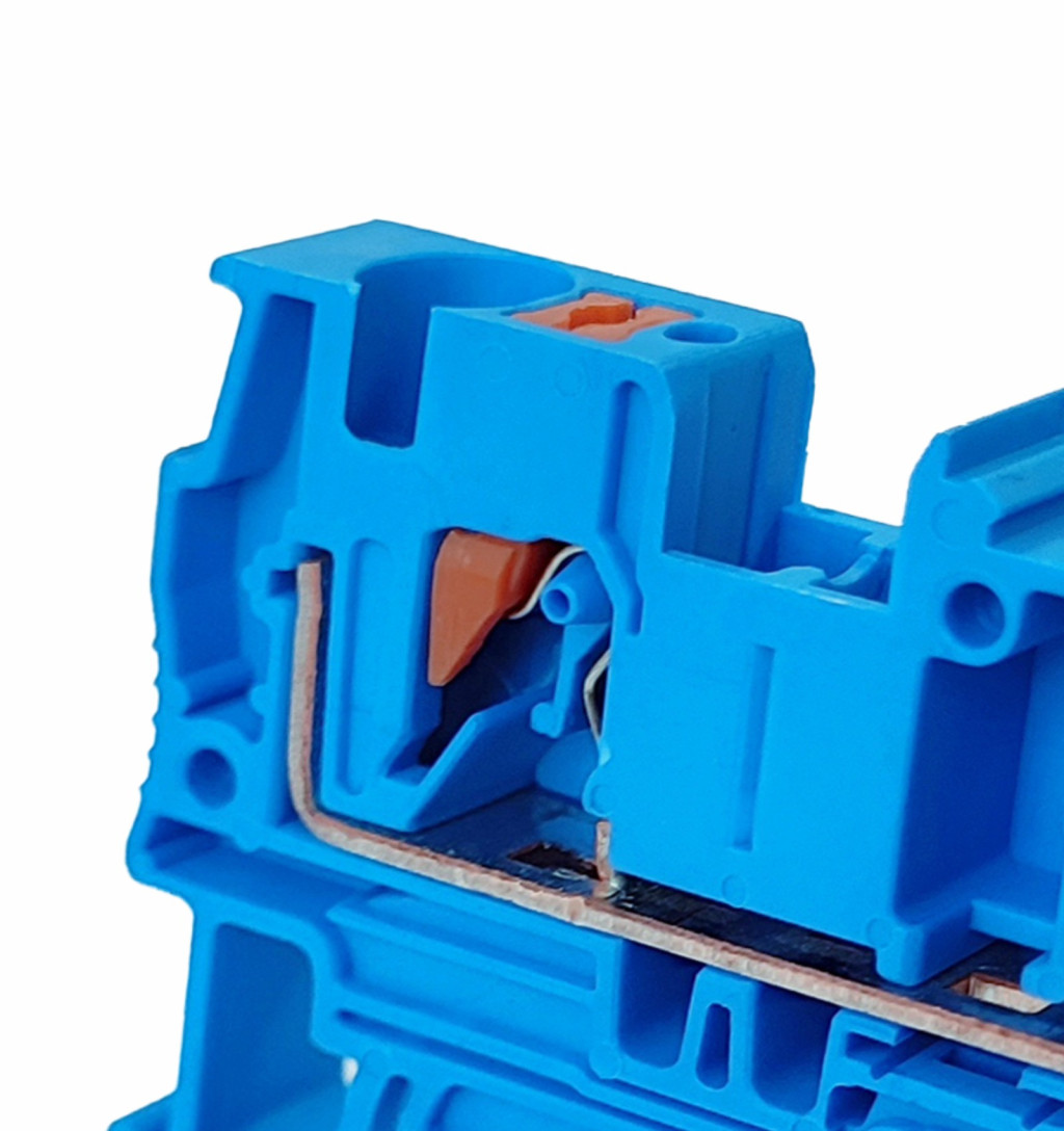 2 vezetékes átmenő Push-in sorkapocs DIN sínre pattintható 0,25-4mm2 32A kék Omu system TPI224L