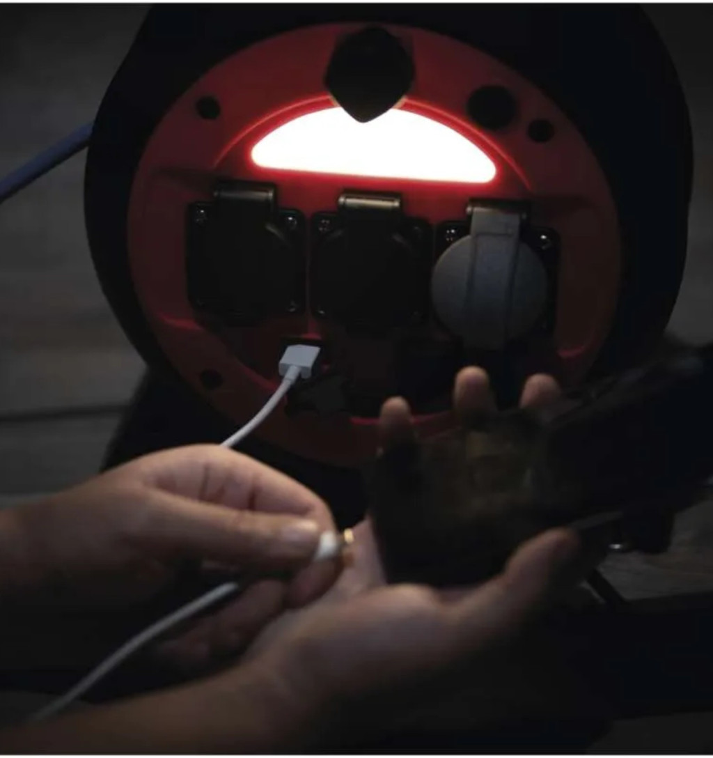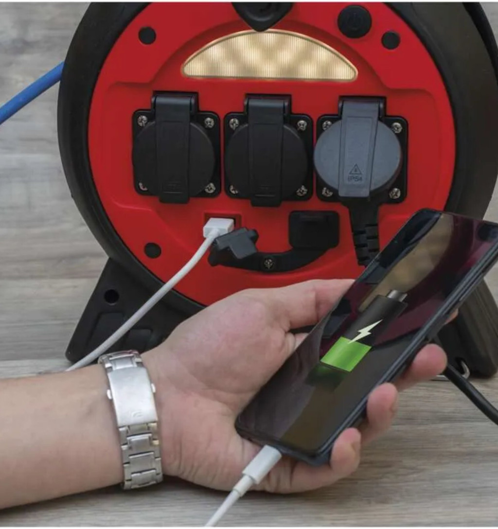 A fagyásálló kábeldob extrém időjárási körülmények között is megbízhatóan működik, -35°C és +60°C között. A beépített LED lámpa segítségével sötétben is könnyedén csatlakoztathatja készülékeit.