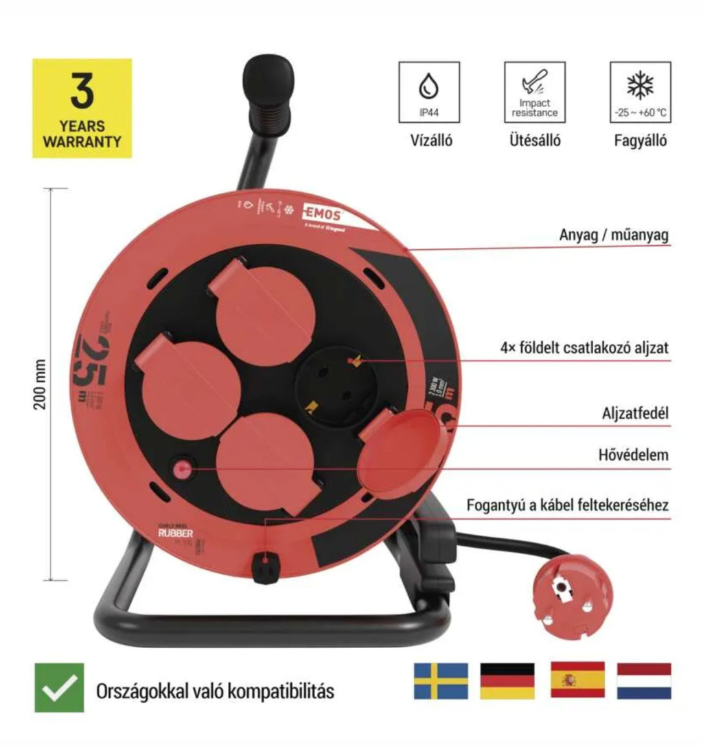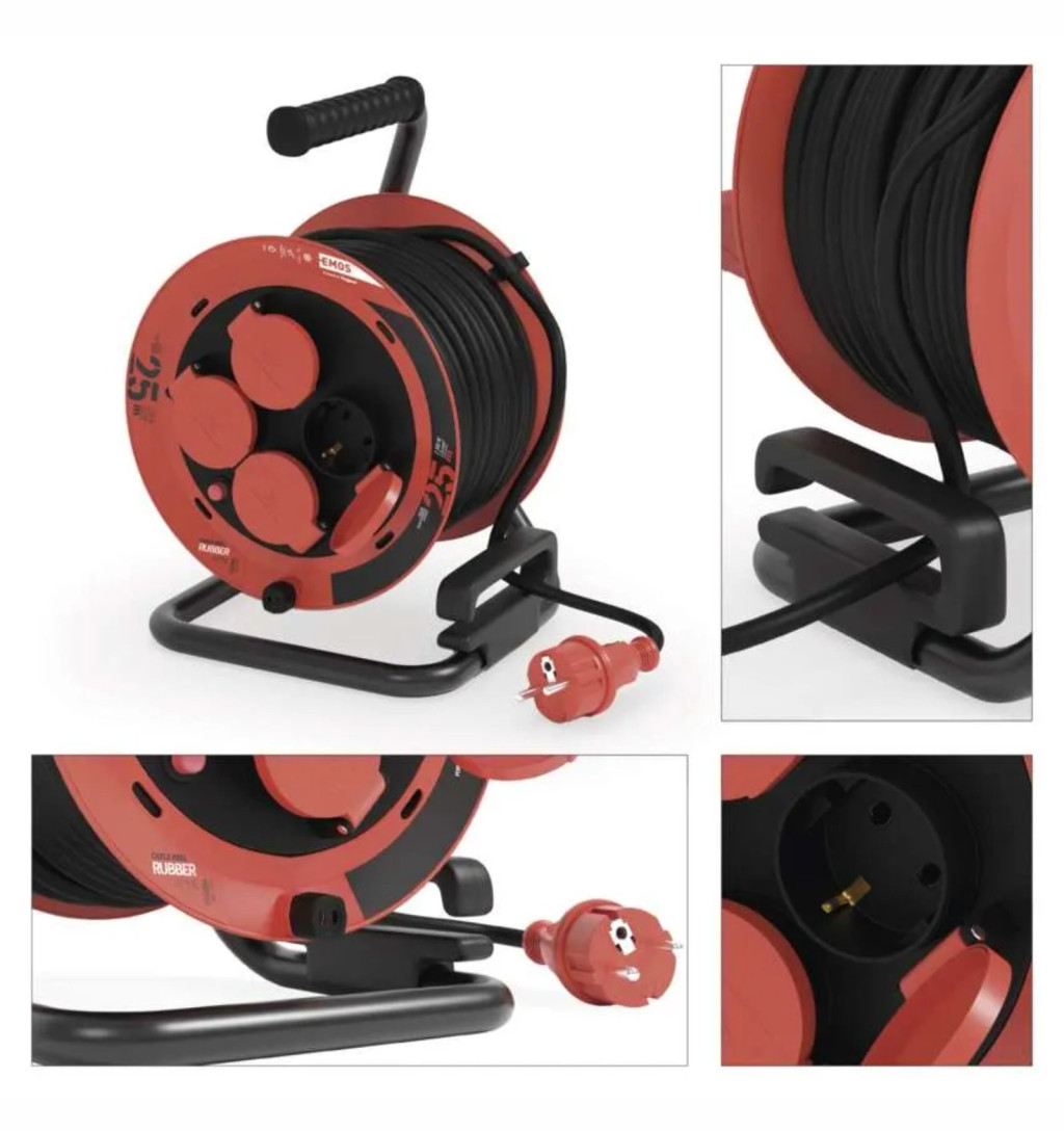 Emos dobos hosszabbító 25m – gumi kábellel, IP44