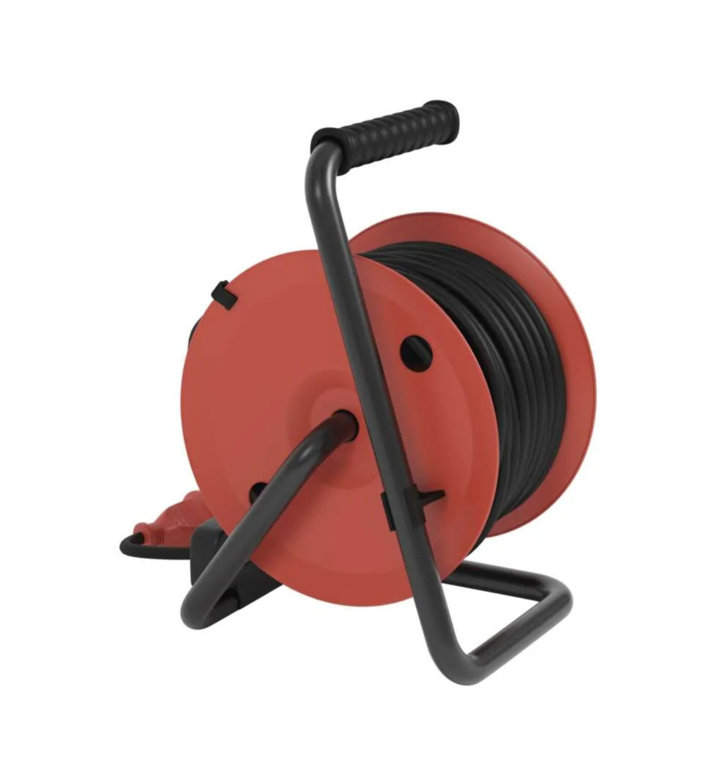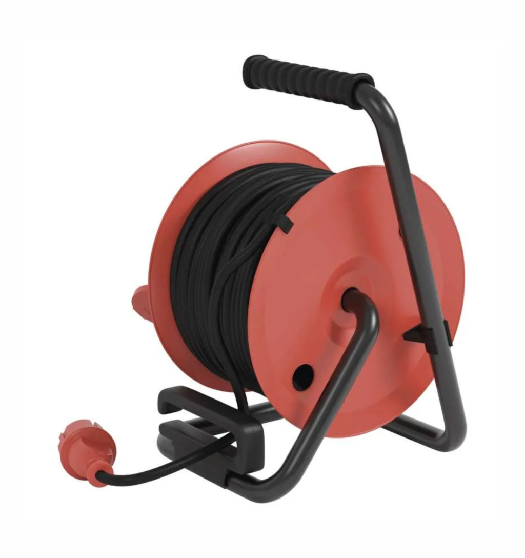 Az IP44-es védelemmel ellátott kábeldob ellenáll a fröccsenő víznek és a poros környezetnek, így ideális építkezéseken, műhelyekben vagy otthoni kertészeti munkákhoz is.