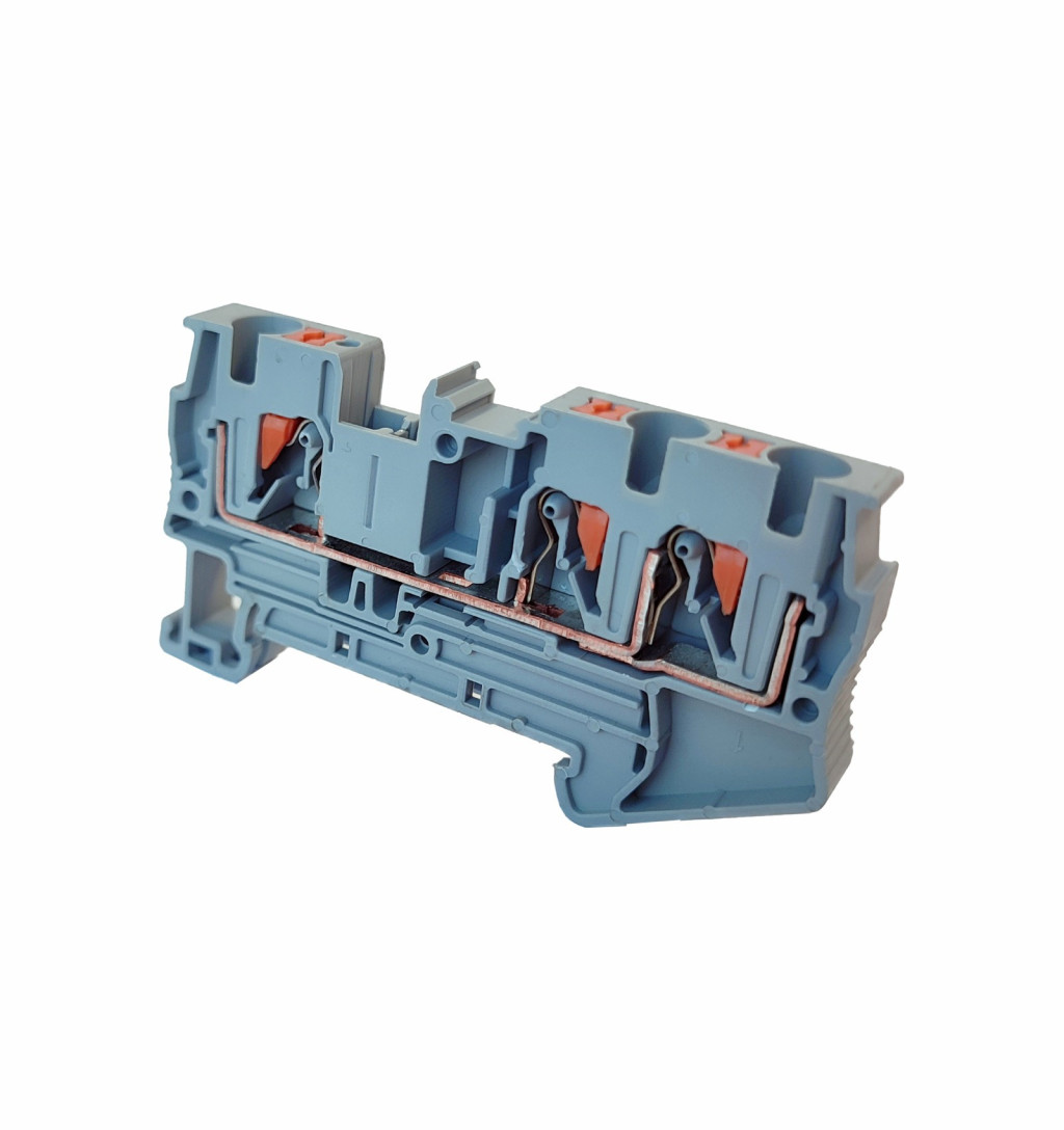3 vezetékes átmenő Push-in sorkapocs DIN sínre pattintható 0,25-4mm2 32A szürke Omu system TPI324L TWIN