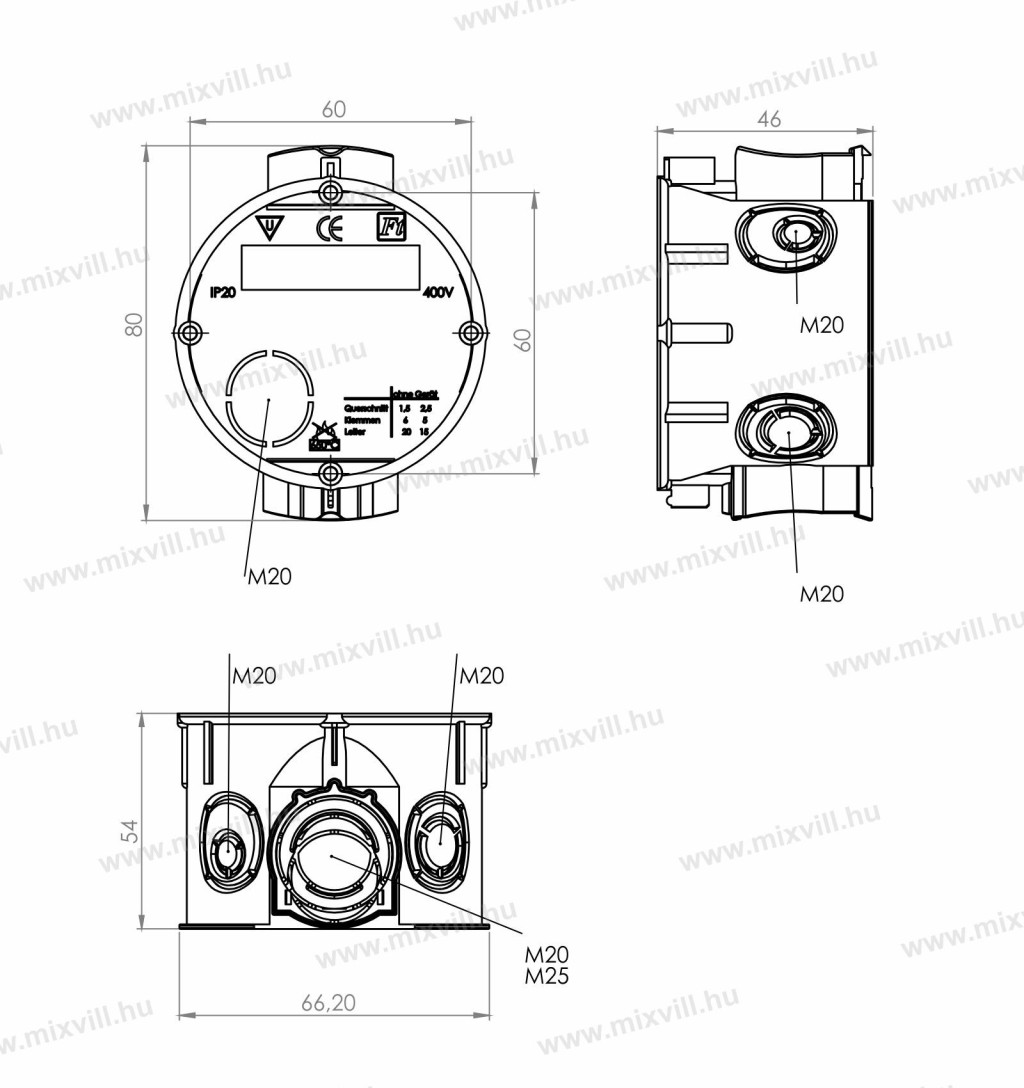 - M20 és M25 csőbemenet