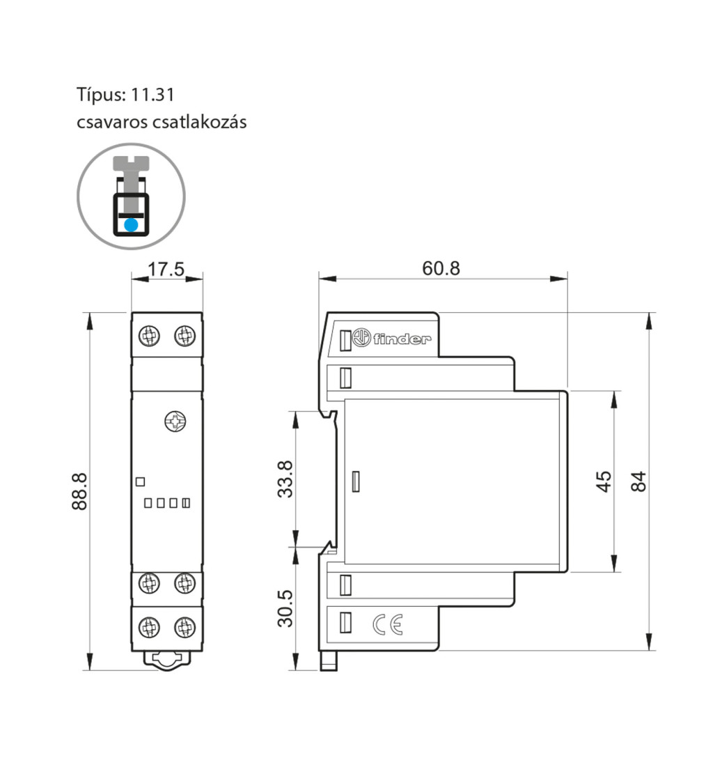 - DIN sínre szerelhető (TS 35 mm – EN 60715)