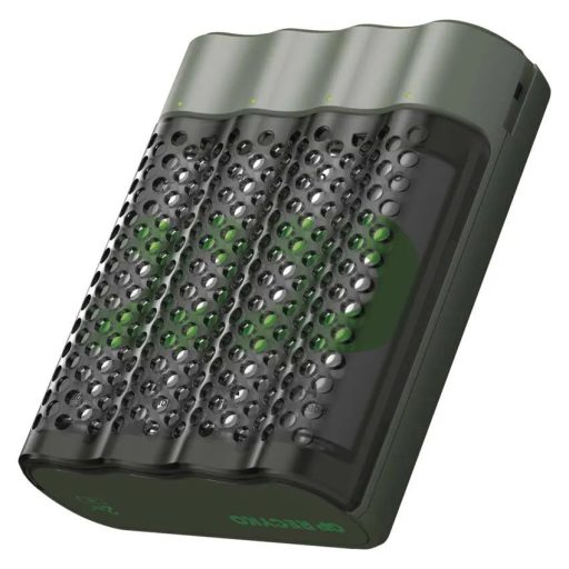 A perforált borításnak köszönhetően a töltő akkumulátor-szervezőként is használható, védi az akkukat otthon és útközben is. Kompakt mérete: 78 × 68 × 25 mm.