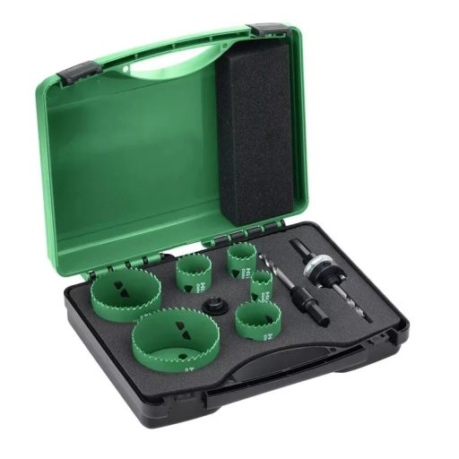 A Hitachi HSS Bimetál II./2 körkivágó készlet kifejezetten villanyszerelők és szerelési szakemberek számára készült. A bimetál ötvözetű, nagy kopásállóságú körkivágók ideálisak acélöntvényekhez, szerkezeti acélokhoz, alumínium- és rézötvözetekhez, fához, műanyaghoz és gipszkartonhoz. Megbízható megoldás konnektorok, kapcsolók és kábelátvezetések kivágásához.