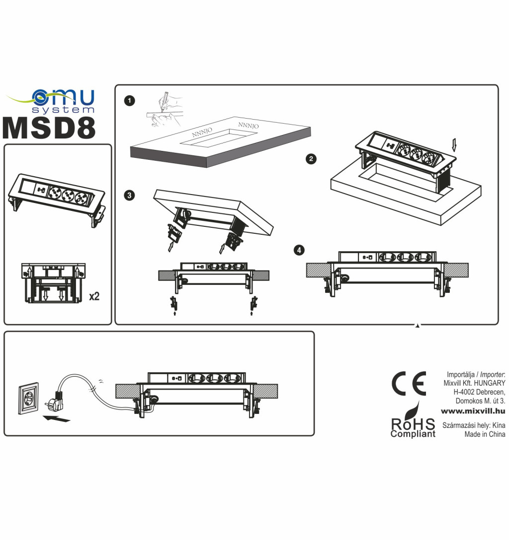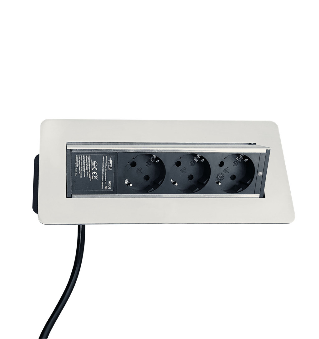 Az OMU System bútorba süllyeszthető elosztó modern és elegáns megoldás otthoni és irodai használatra. 3 aljzat csatlakozóval rendelkezik, így tökéletes konyhákba, irodákba és munkaállomásokra.