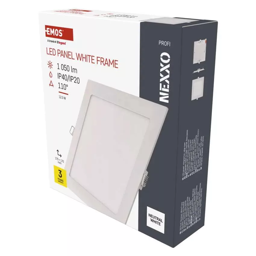 Süllyesztett négyzet alakú LED panel 12,5W 170x170mm 4000K 1050lm alumínium NEXXO ZD2135 Emos