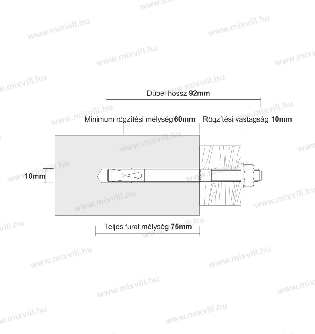 - Dűbel hossz: 92mm