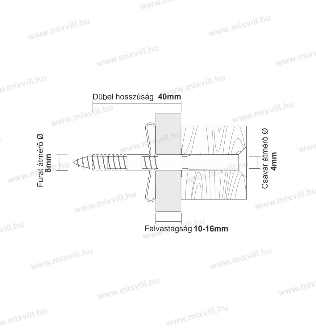 - Dűbel hossz: 40mm