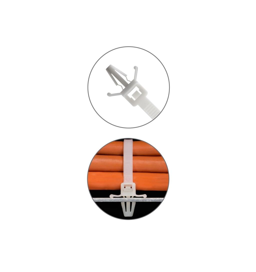 A PA6.6 természetes színű kábelkötegelők kifejezetten panelekre történő rögzítéshez lettek tervezve, amelyek biztosítják a stabil és tartós alkalmazást, különösen kapcsolótáblák, speciális vezetékek, valamint készülékek belső paneljei esetében. Ezek a kábelkötegelők úgy vannak kialakítva, hogy lyukba helyezve könnyen rögzíthetők legyenek, ami növeli a szerelés pontosságát és megbízhatóságát.