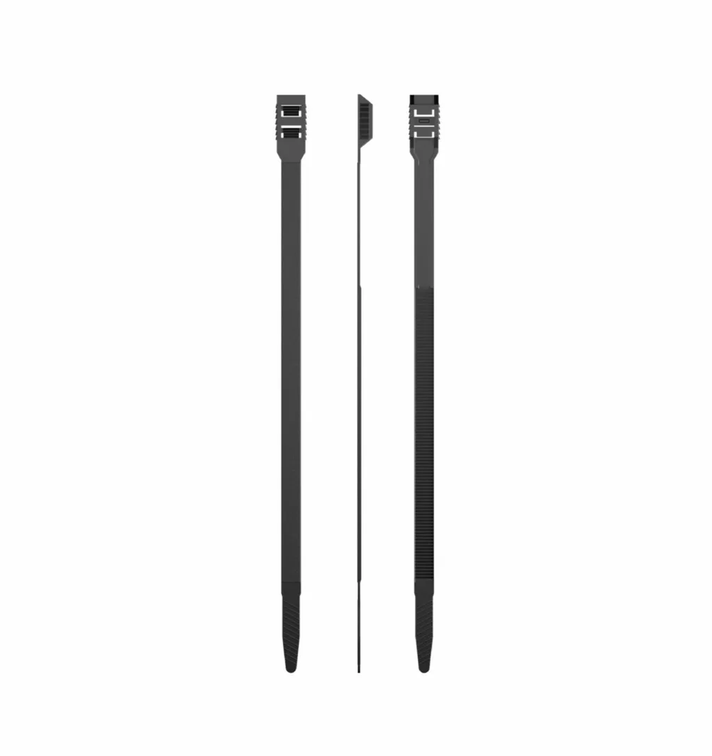 A PA12 (poliamid 12) alapanyagú, fekete színű kábelkötegelő egy rendkívül strapabíró és időjárásálló termék, amelyet kifejezetten kültéri használatra terveztek, még olyan extrém környezetekben is, mint a tengeri környezet. A PA12 anyag különlegessége, hogy kiváló ellenállást biztosít a környezeti hatásokkal, például a napfénnyel, hőmérséklet-ingadozással és légköri anyagokkal szemben.