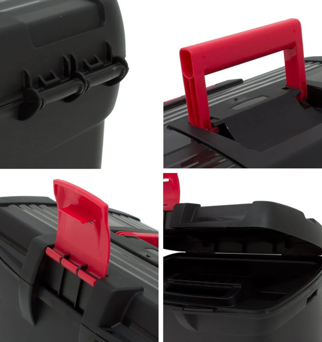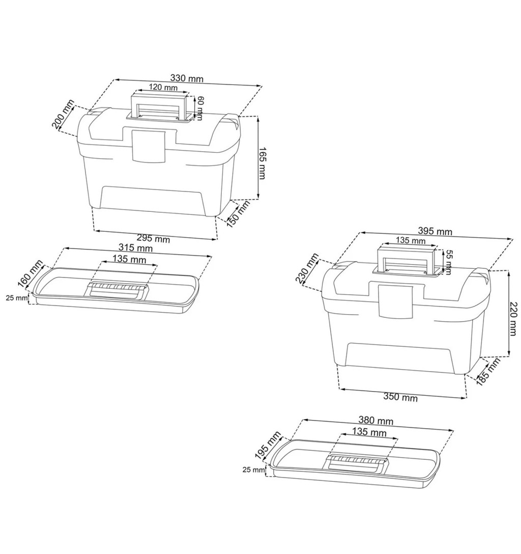 - A belső tálca különböző méretű rekeszekre van osztva, így egyszerűen tárolhatók benne különböző méretű szerszámok és apróbb alkatrészek.