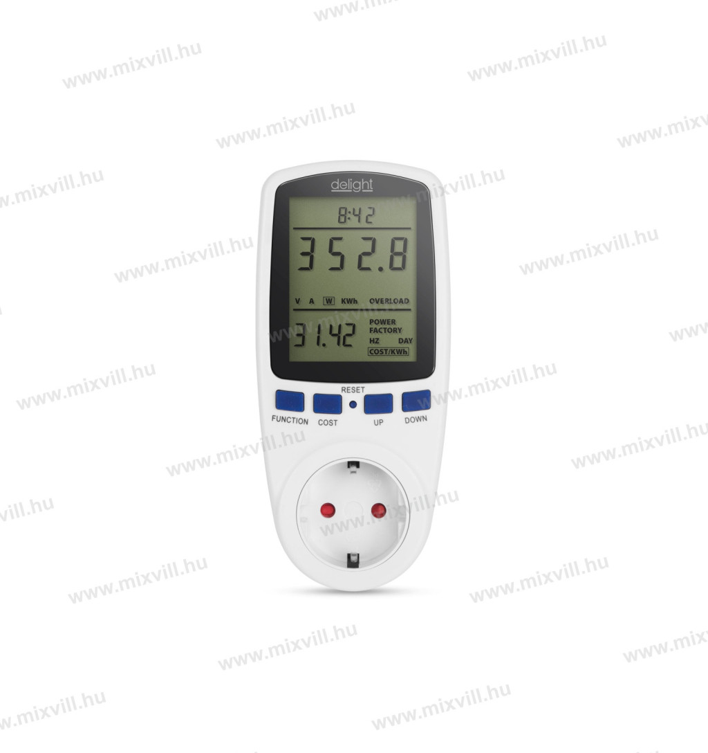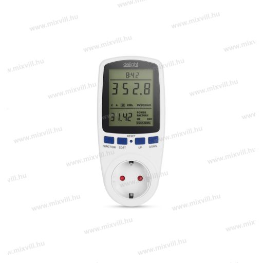 A dugaljba dugható fogyasztásmérő készülék segít Önnek egy energiatakarékos otthon kialakításában. Méri a feszültséget, az áramerősséget, frekvenciát, teljesítményt, és ezek alapján kiszámolja az energiafogyasztást. Túlterhelés esetén a készülék azonnal figyelmeztető hangot ad. A készülék előre betáplált egységárak alapján képes a teljes költség meghatározására.