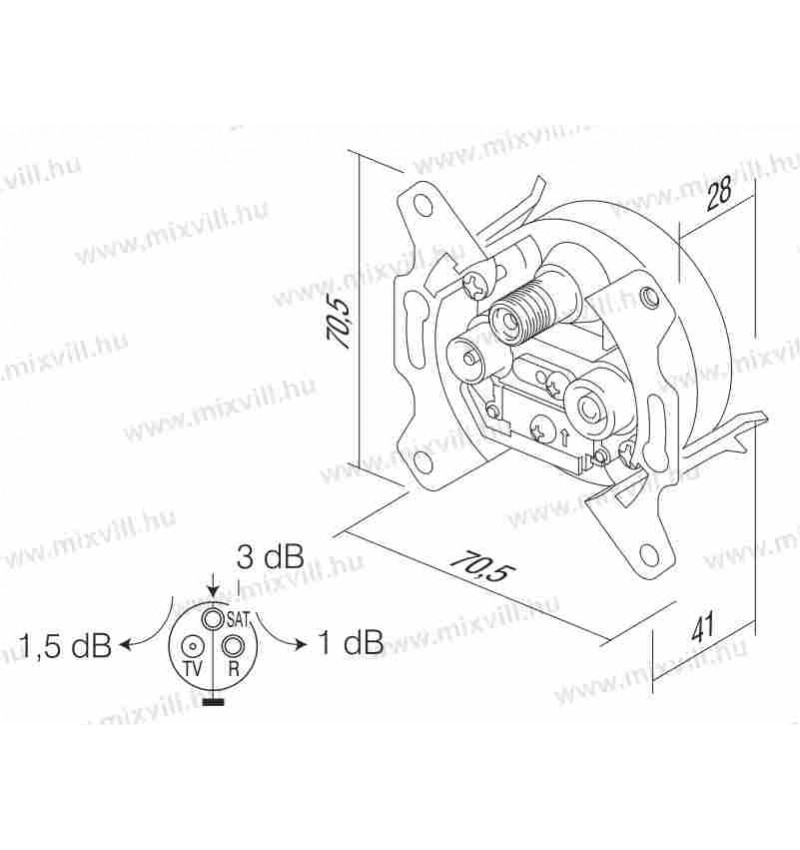 • Csillapítás: R-1dB, TV-15dB, SAT-3dB
