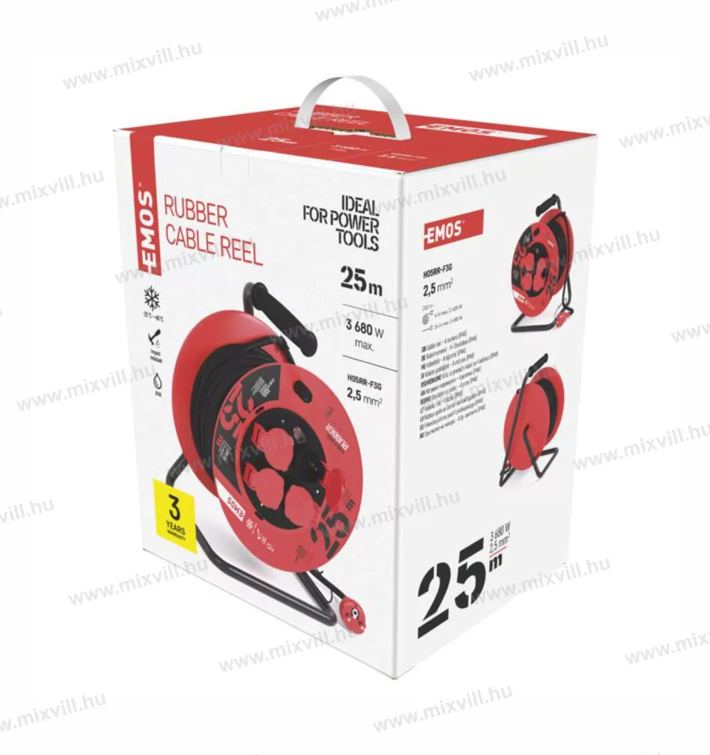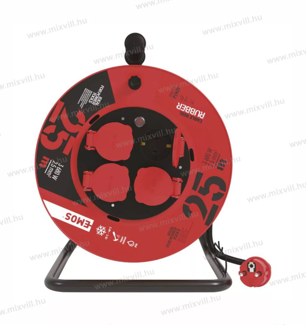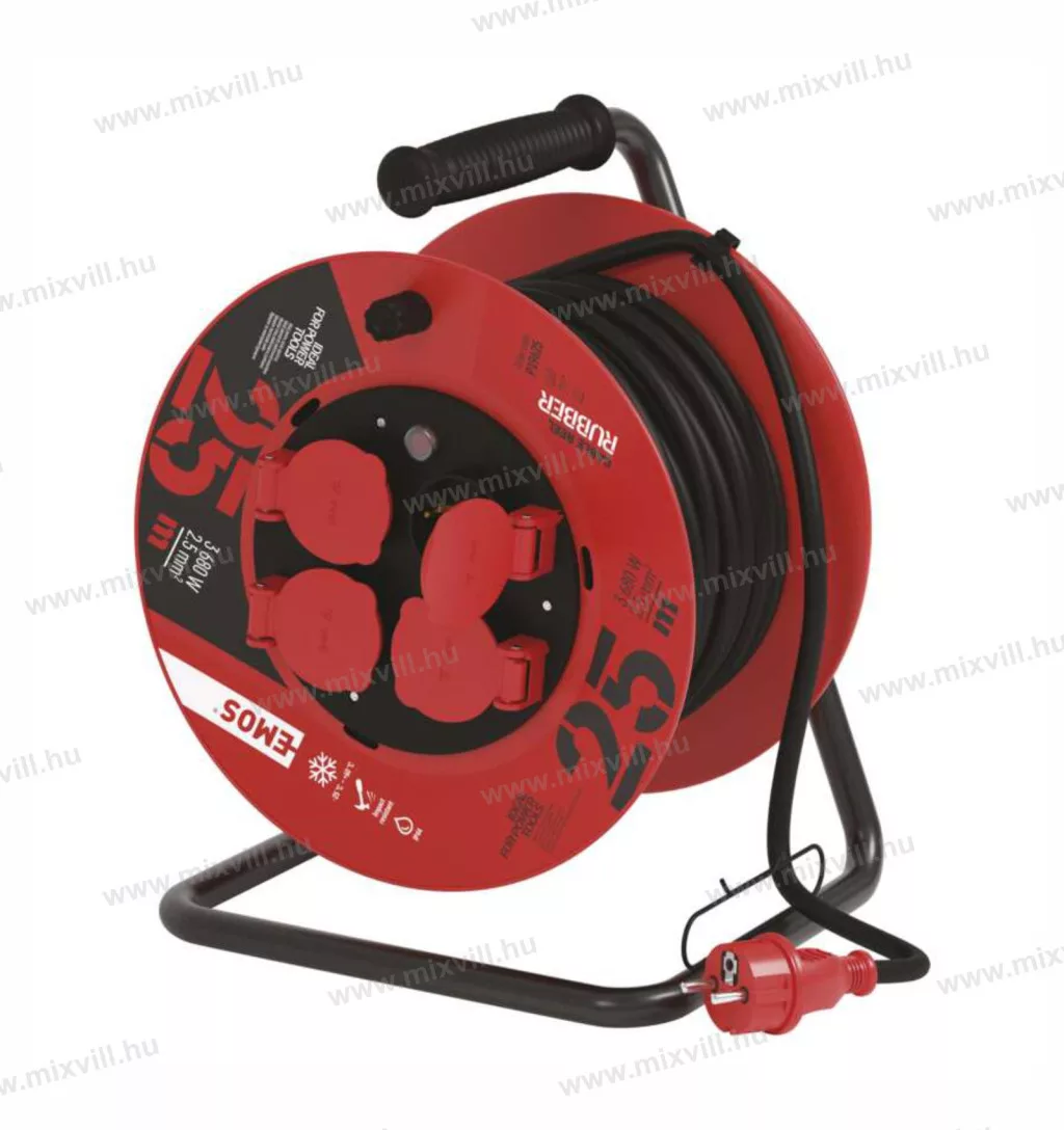EMOS kábeldob gumikábellel, 4 aljzat, 25m, IP44, P19625