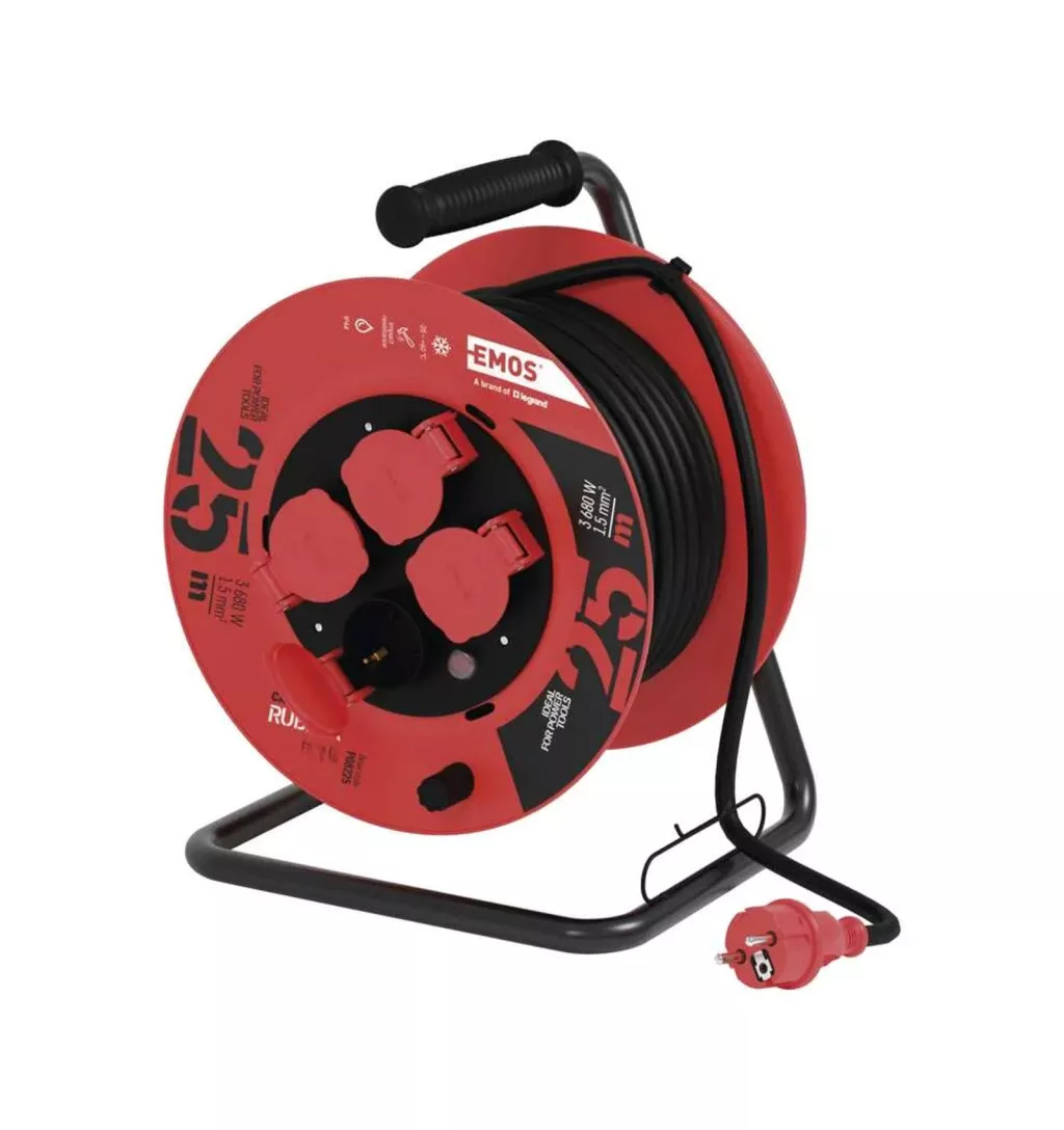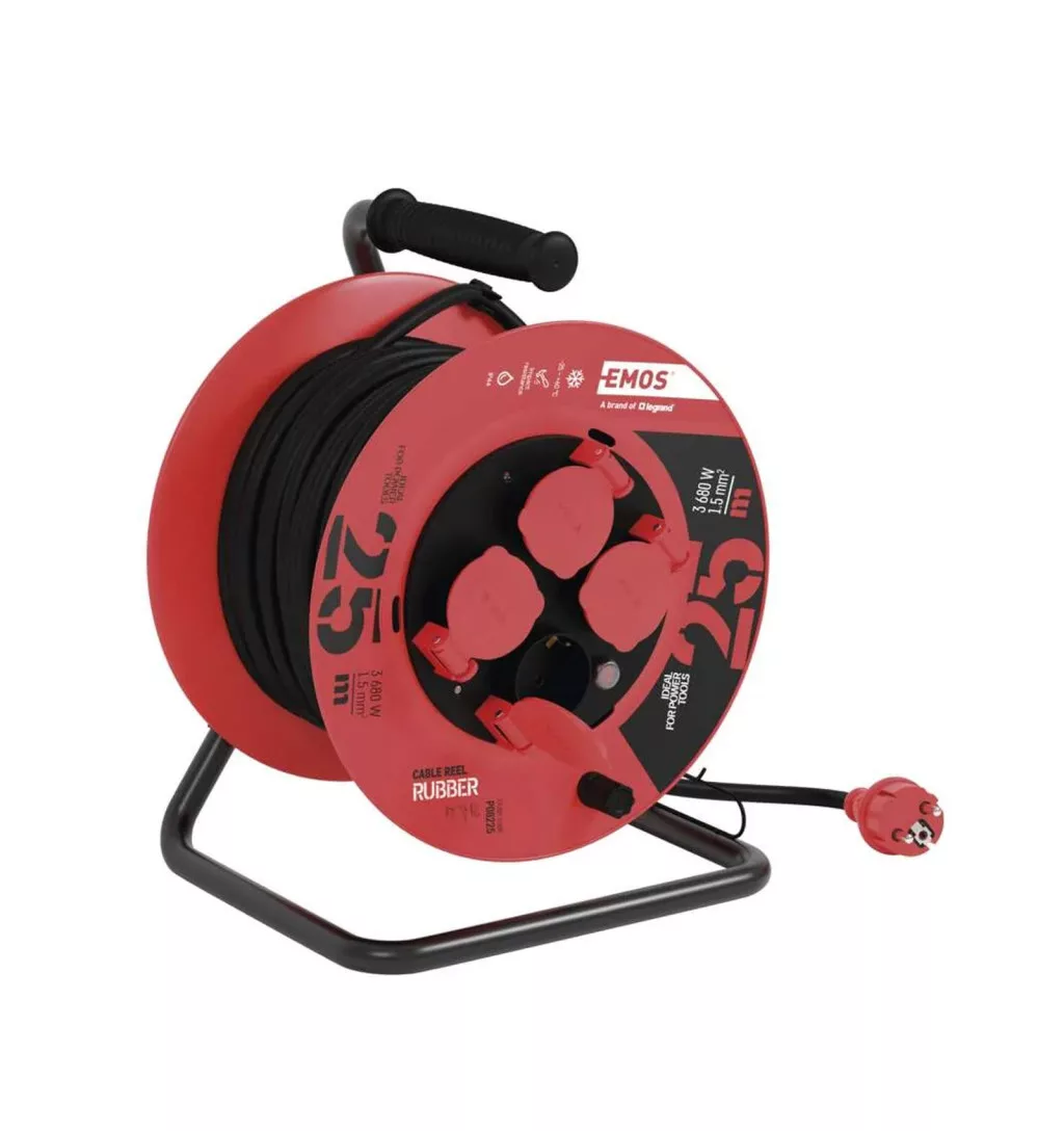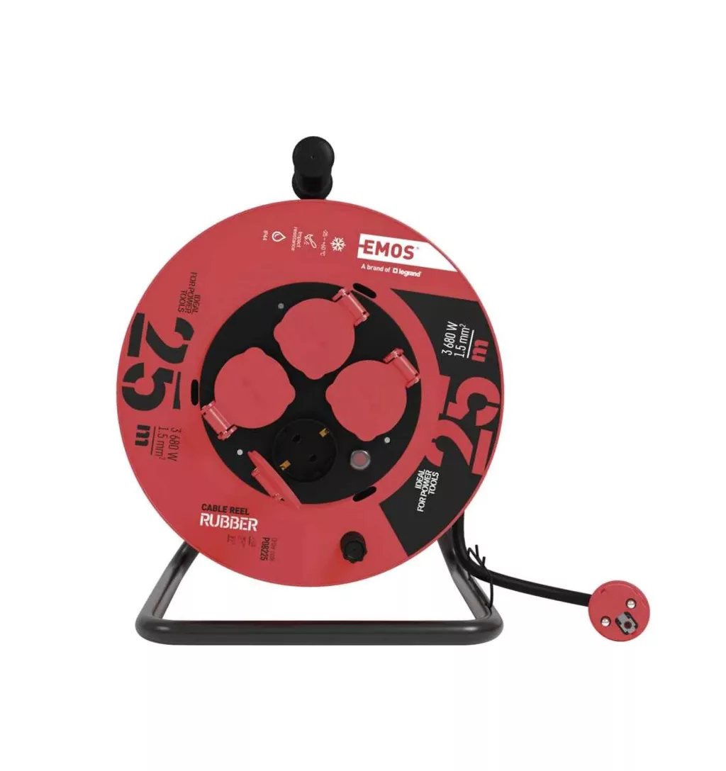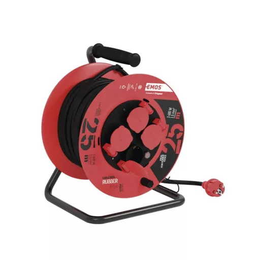 EMOS kábeldob gumikábellel, 4 aljzat, 25m, IP44, 3x1.5mm2 P08225