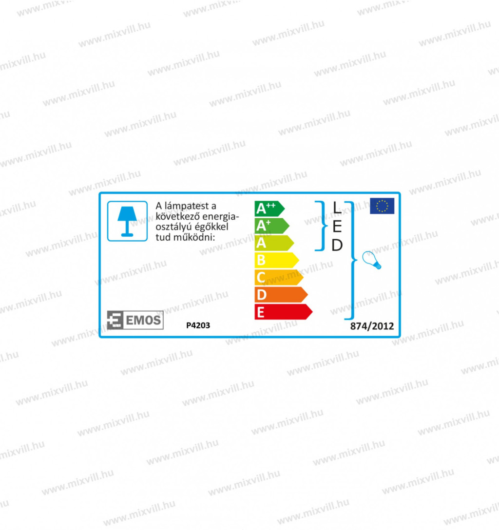 • Fényforrás: izzó max. 60 W (nem tartozék)