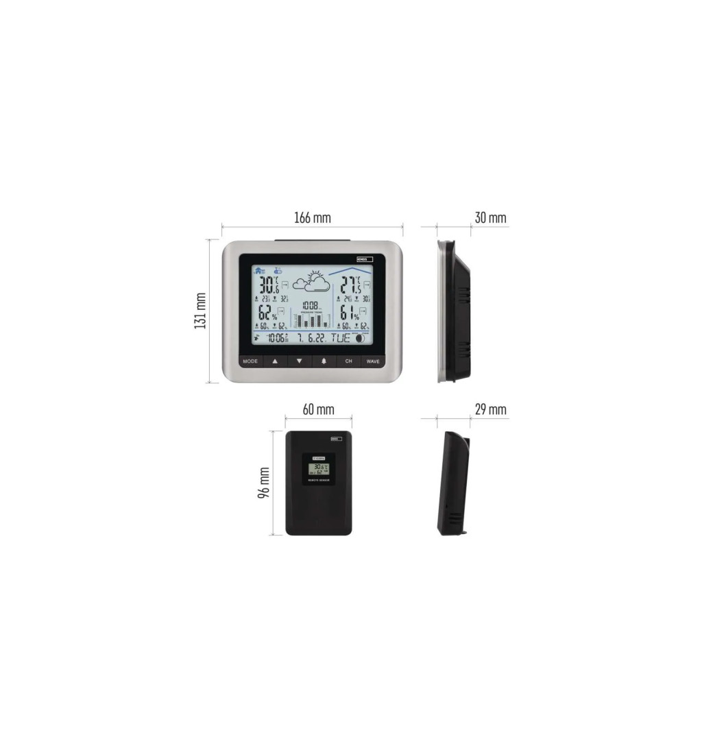 - Áramellátás: 3x AA elem (állomás) és 2x AAA elem (szenzor) – nem tartozék