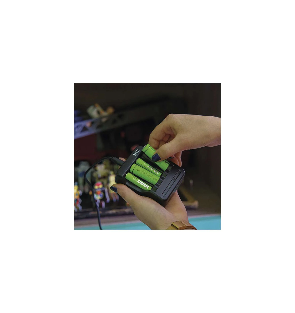 Ez az elemtöltő - ellentétben a régebbi töltőmodellekkel - nem korlátozza a behelyezett akkumulátorok számában és méretében, hiszen a négy független töltőcsatornának köszönhetően tetszőleges számú és kombinációjú tölthető akkumulátort helyezhet be.
