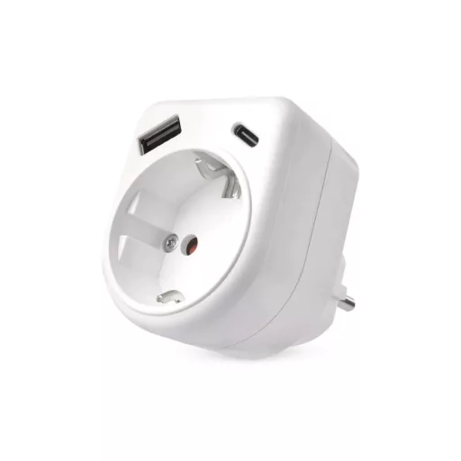 Az Emos elosztó aljzat 1× SCHUKO, 1× USB-A és 1× USB-C csatlakozóval rendelkezik. Kompakt, fehér színű kivitelben, gyerekzárral és IP20 védettséggel ellátva. Maximális terhelhetősége 3 680 W, 250 V~/16 A áramerősség mellett.