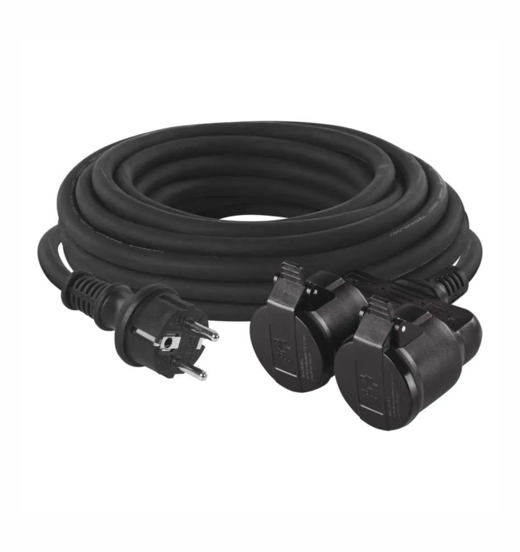 Hosszabbító 10 m – gumivezeték, IP44, 2 aljzat