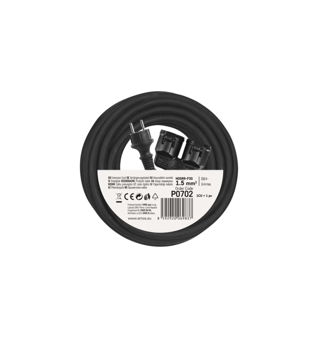 Emos P0702 hosszabbító 3x1,5m2 15m gumi IP44 16A dupla dugalljal