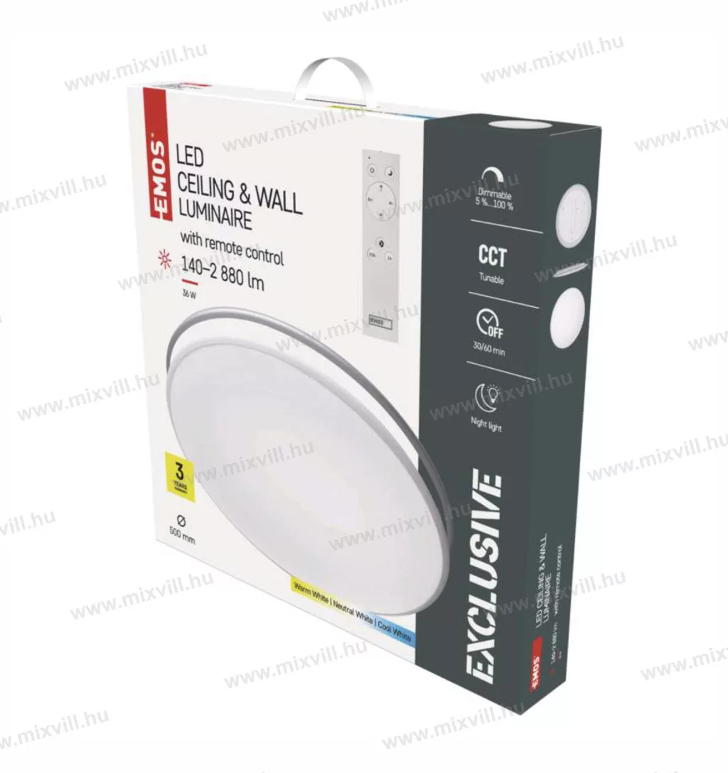 Emos ZM5166 LED mennyezeti lámpa kerek 50cm 140-2880lm dim. 36W 3in1 szính. távirányít. 3év garancia