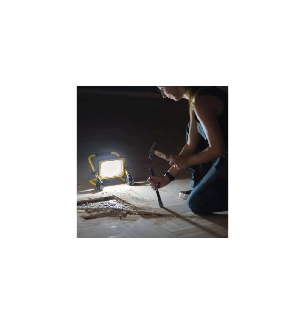 A 120°-os LED-es reflektor robusztus kialakításának köszönhetően zord környezetben való munkavégzésre is alkalmas. Azonban nem csak az építkezésekenmunkahelyek megvilágításánál hasznos, hanem <>családi házakban, garázsokban vagy műhelyekben végzett munkáknál is jól jön. Minden bizonnyal nagyszerű és tárolható társ lesz még kempingezéskor is. A reflektor praktikus tulajdonsága a háromfokozatú fényerőszabályozás, a fény 100%, 50% és 25%-on világít.
