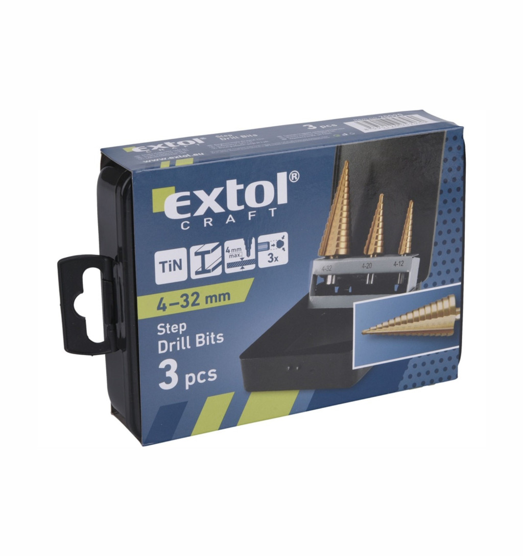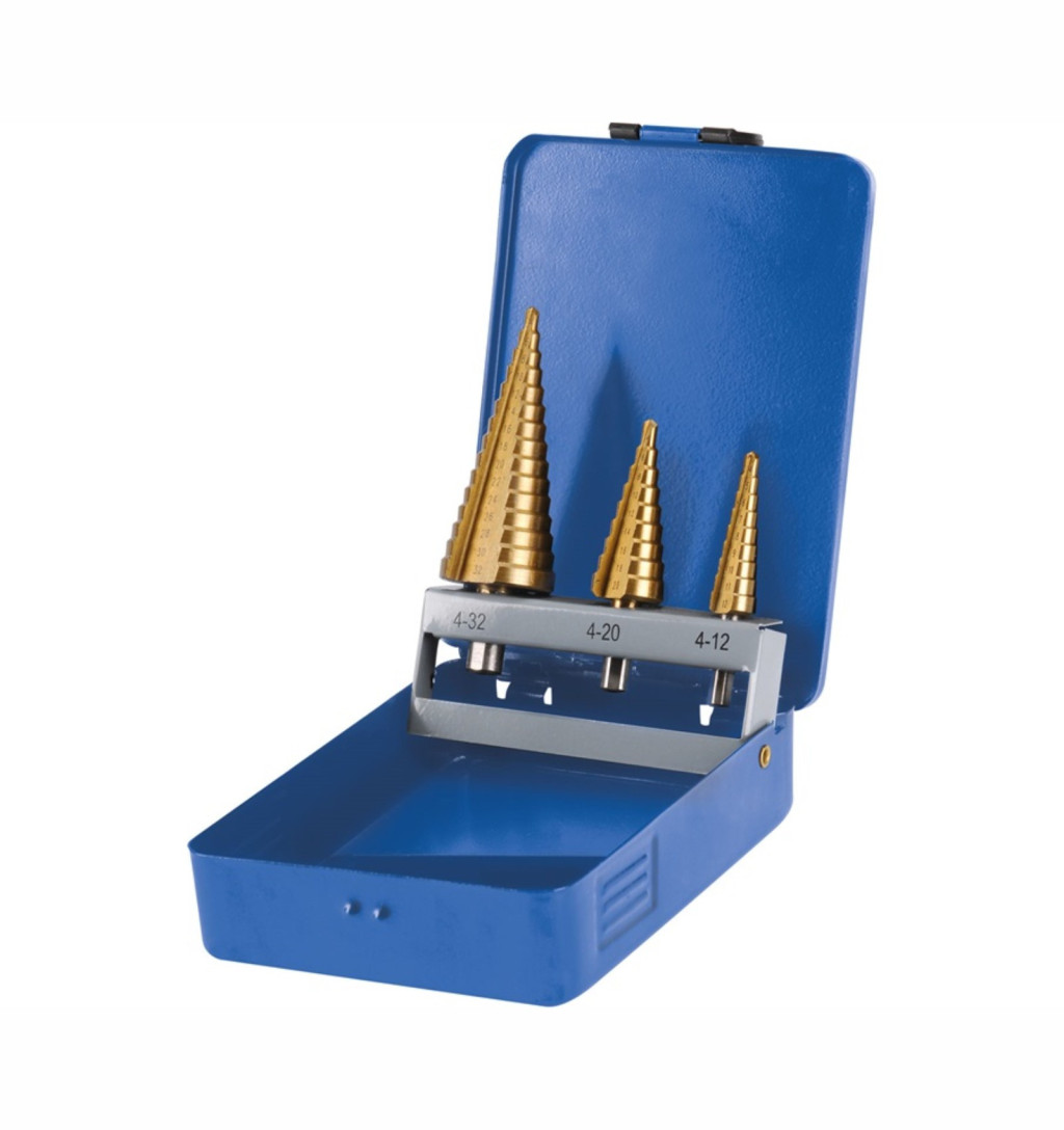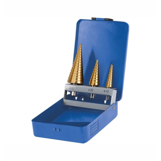 Extol 20090 lépcsős fémfúró klt. 3db 4-12mm/1mm lépcsők,4-20mm/2mm,4-32mm/2mm befogás:10mm max.4mm v