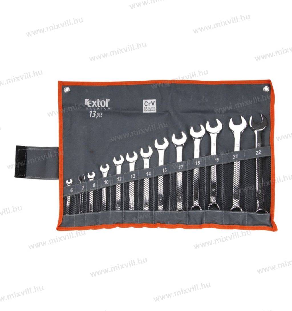 Extol 6733 csillag-villás kulcs készlet, CrV, elliptikus vászon tartóban 13db, 6-22mm