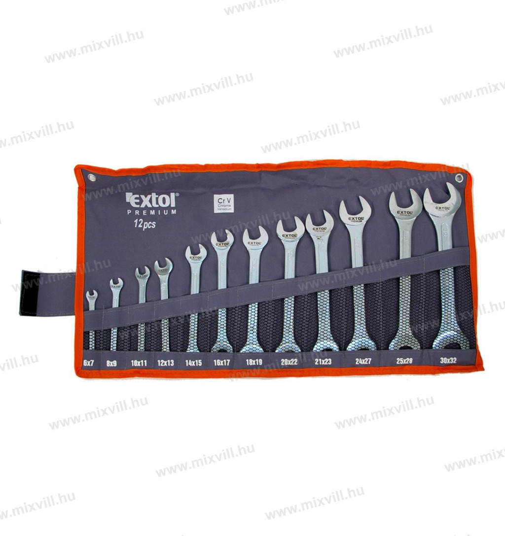 Extol 8631141 villáskulcs készlet CrV., vászon tartóban: 12db, 6-32mm