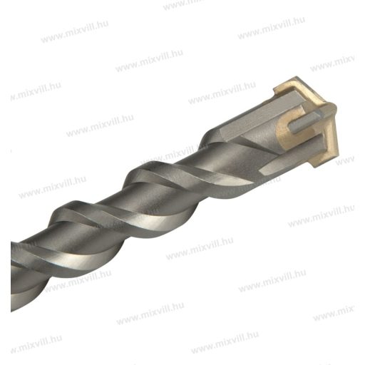 HRA 89,5 -90 keménységűre edzett keresztfejű (4 élű) vídia (keményfém lapkás) YG8 hegy éles csúcsba formázott éle biztosítja a munkaanyagon való határozott áthaladást és jobban ellenáll a magasabb hőmérsékletnek, így nagyobb tartósságot biztosít, valamint élesebb behatolást a fúrt anyagon keresztül. Alkalmas betonba, gránitba, falba, betonelemekbe, téglába stb. való fúráshoz. A fúrószár anyaga: 40 Cr acél, egyszeres csavarorsós a könnyű fúrás valamint a kifúrt zúzalék és por elvezetése érdekében.
