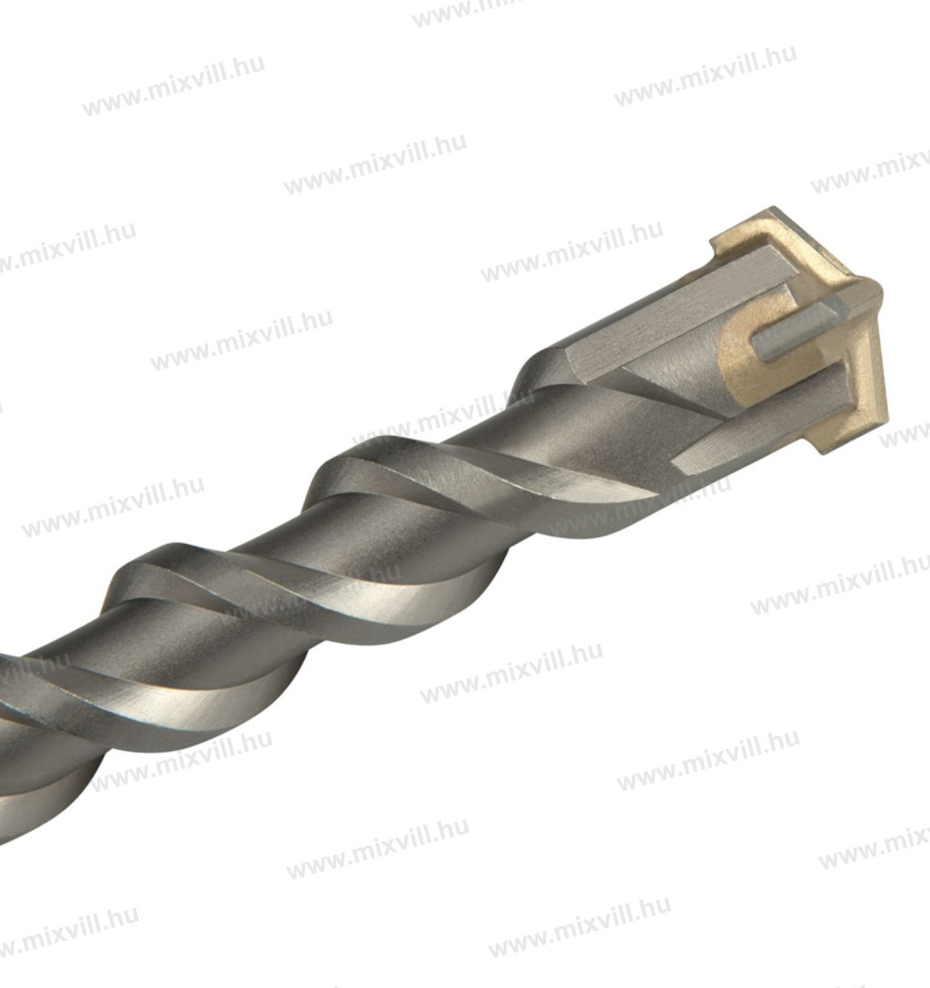 HRA 89,5 -90 keménységűre edzett keresztfejű (4 élű) vídia (keményfém lapkás) YG8 hegy éles csúcsba formázott éle biztosítja a munkaanyagon való határozott áthaladást és jobban ellenáll a magasabb hőmérsékletnek, így nagyobb tartósságot biztosít, valamint élesebb behatolást a fúrt anyagon keresztül. Alkalmas betonba, gránitba, falba, betonelemekbe, téglába stb. való fúráshoz. A fúrószár anyaga: 40 Cr acél, egyszeres csavarorsós a könnyű fúrás valamint a kifúrt zúzalék és por elvezetése érdekében.