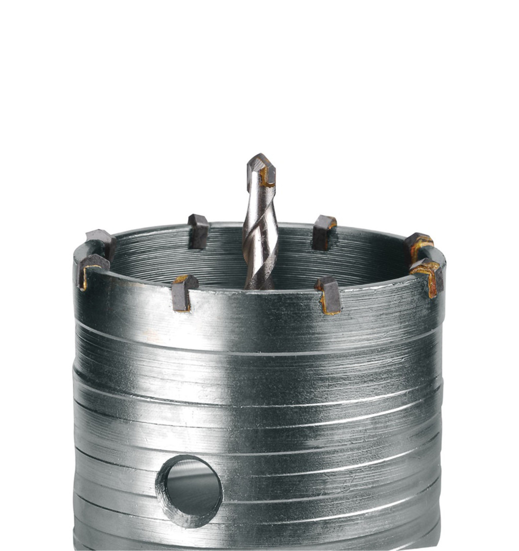 A karbid csúcs lehetővé teszi a fúrófej könnyű behatolását az anyagba. M16×100mm hosszú szár. Téglába puhább anyagú falakba ajánljuk.SDS Plus tokmányú fúrógépekbe lehet befogni. A falbasüllyeszthető műanyag villamos dobozok helyének kifúrására.