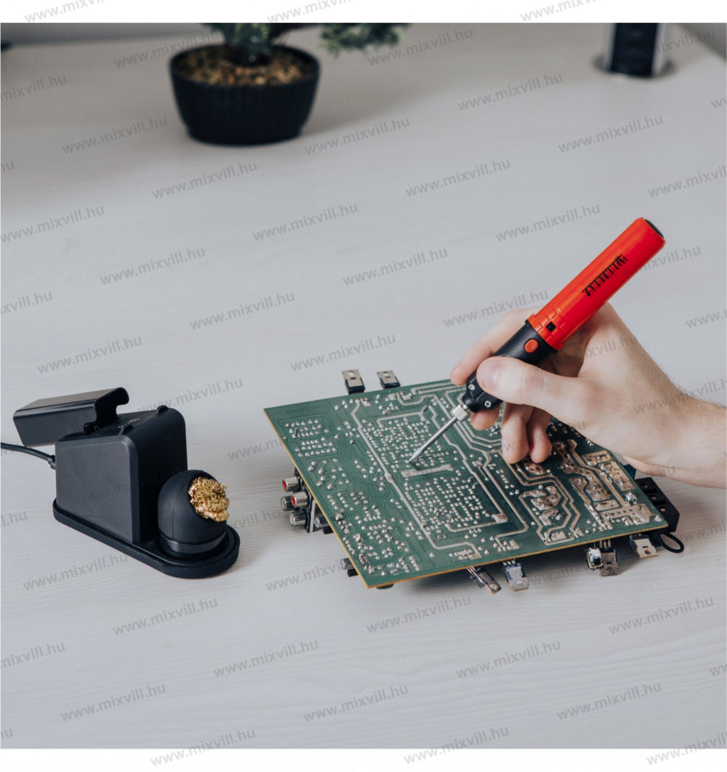 Az akkumulátoros forrasztópáka segítségével forraszthat olyan helyeken is, ahol külső tápellátás nem biztosított. Az ergonomikus kialakítás, kényelmes használatot biztosít. Rövid felfűtési idejű, könnyen cserélhető pákahegyek. A töltése egyszerű, vezeték nélküli változat, a saját pákatartójába visszahelyezve automatikusan történik. A pákatartó microUSB csatlakozóval rendelkezik, így annak táplálása történhet bármilyen külső USB eszközről (hálózati adapter, powerbank, laptop stb…)