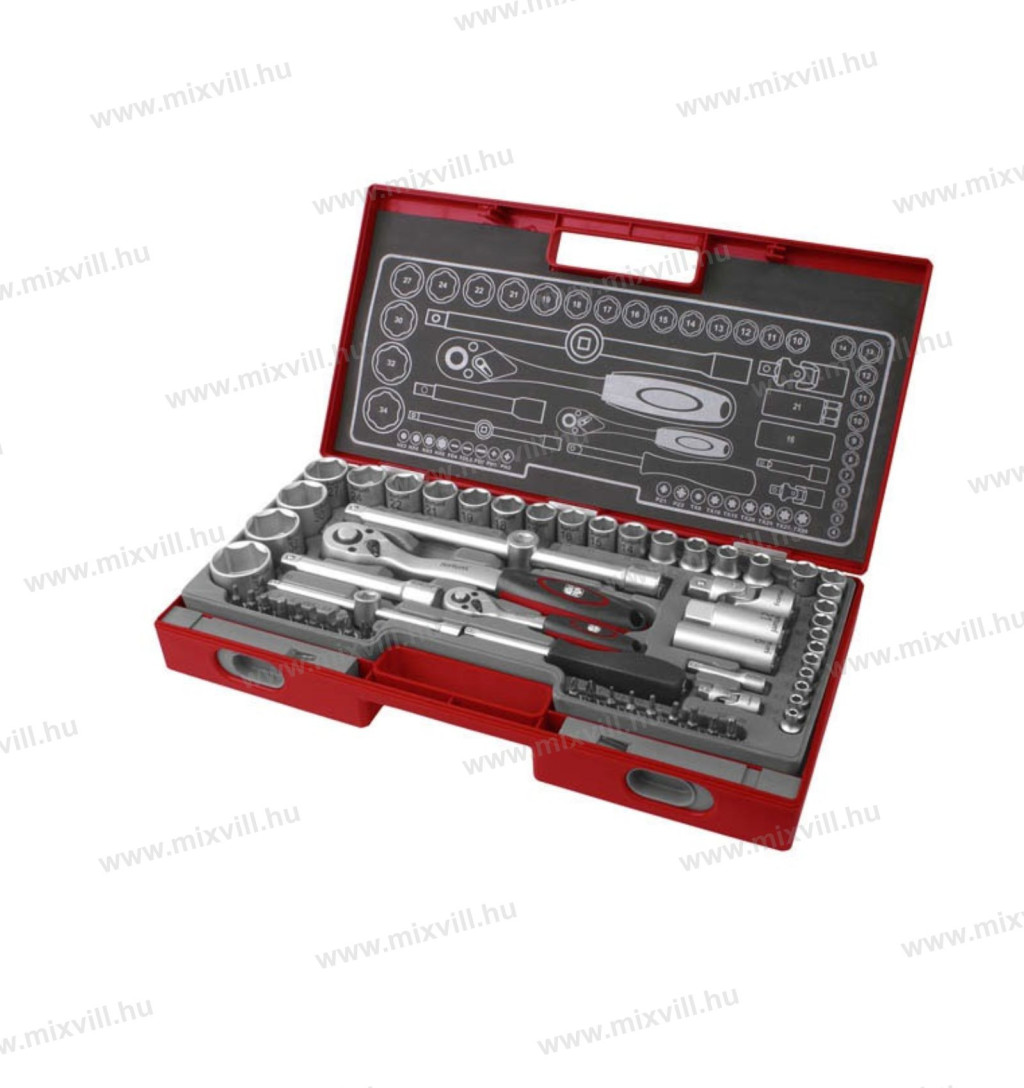 72 fogas hajlitott racsni, MECHANIC, dugófejek: 4-34mm, bithegyekkel, 16, 21mm gyertyakulcs, 50-250mm hossz. szár, csukló