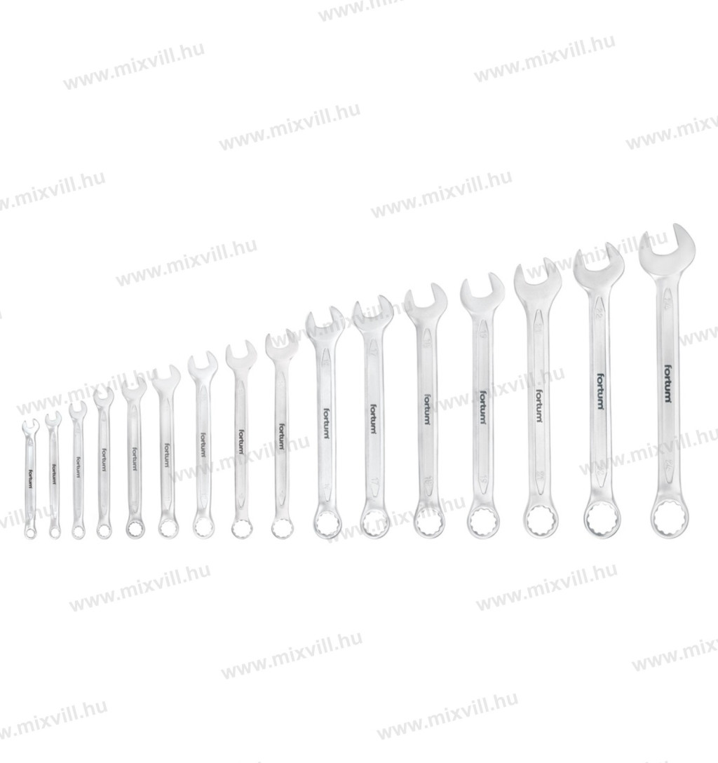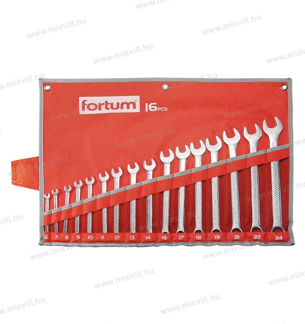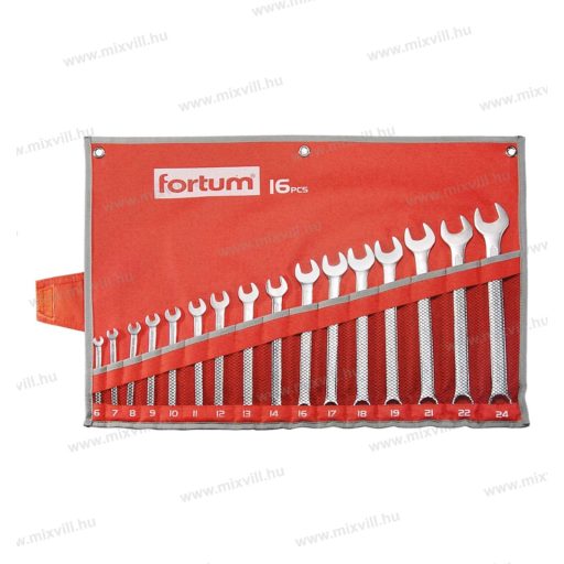 Fortum 4730201 csillag-villás kulcs készlet 16db, 6-24mm 61CrV5, mattkróm, vászon tok