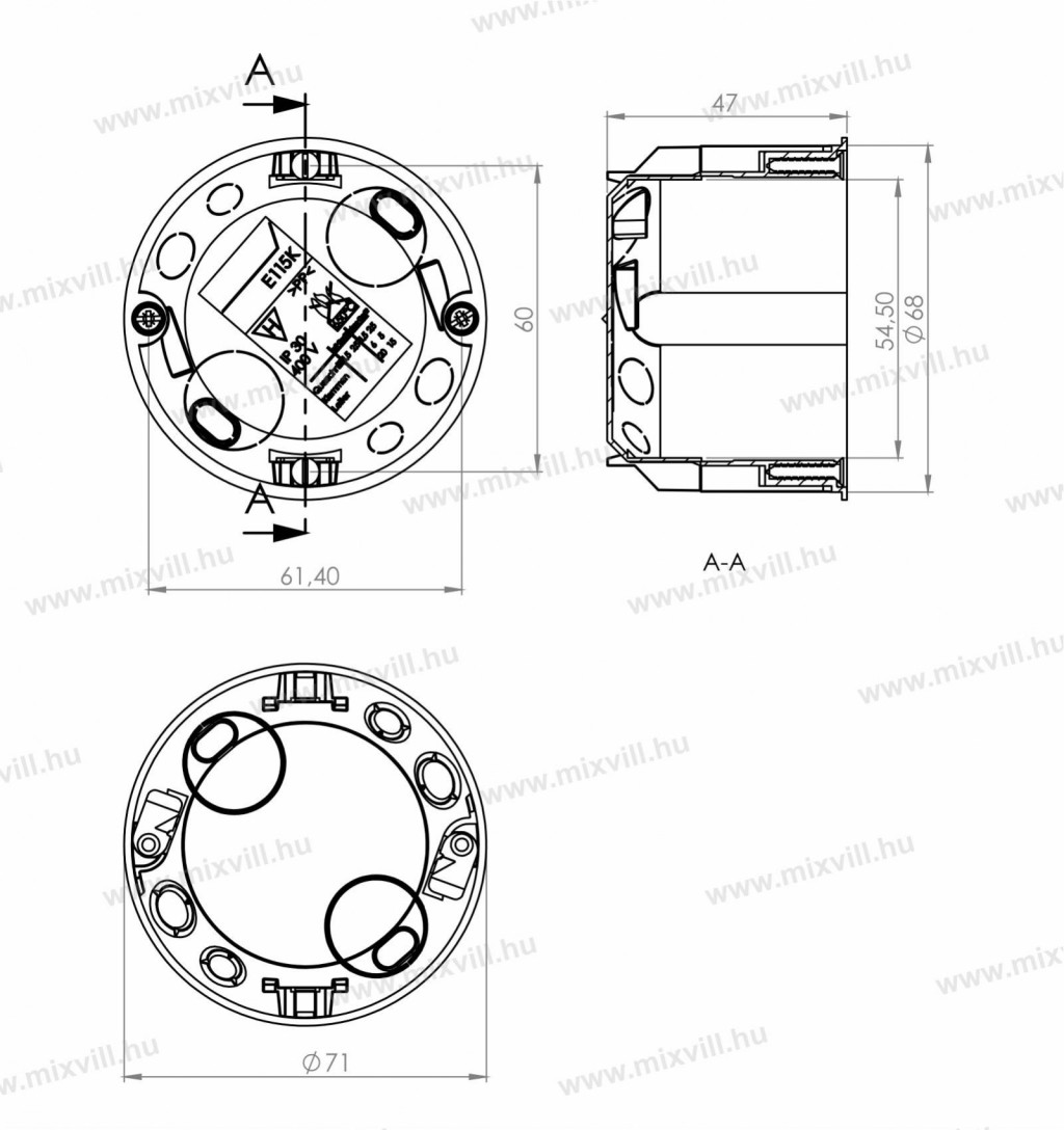 - Beépítési lyuk átmérő: 68 mm