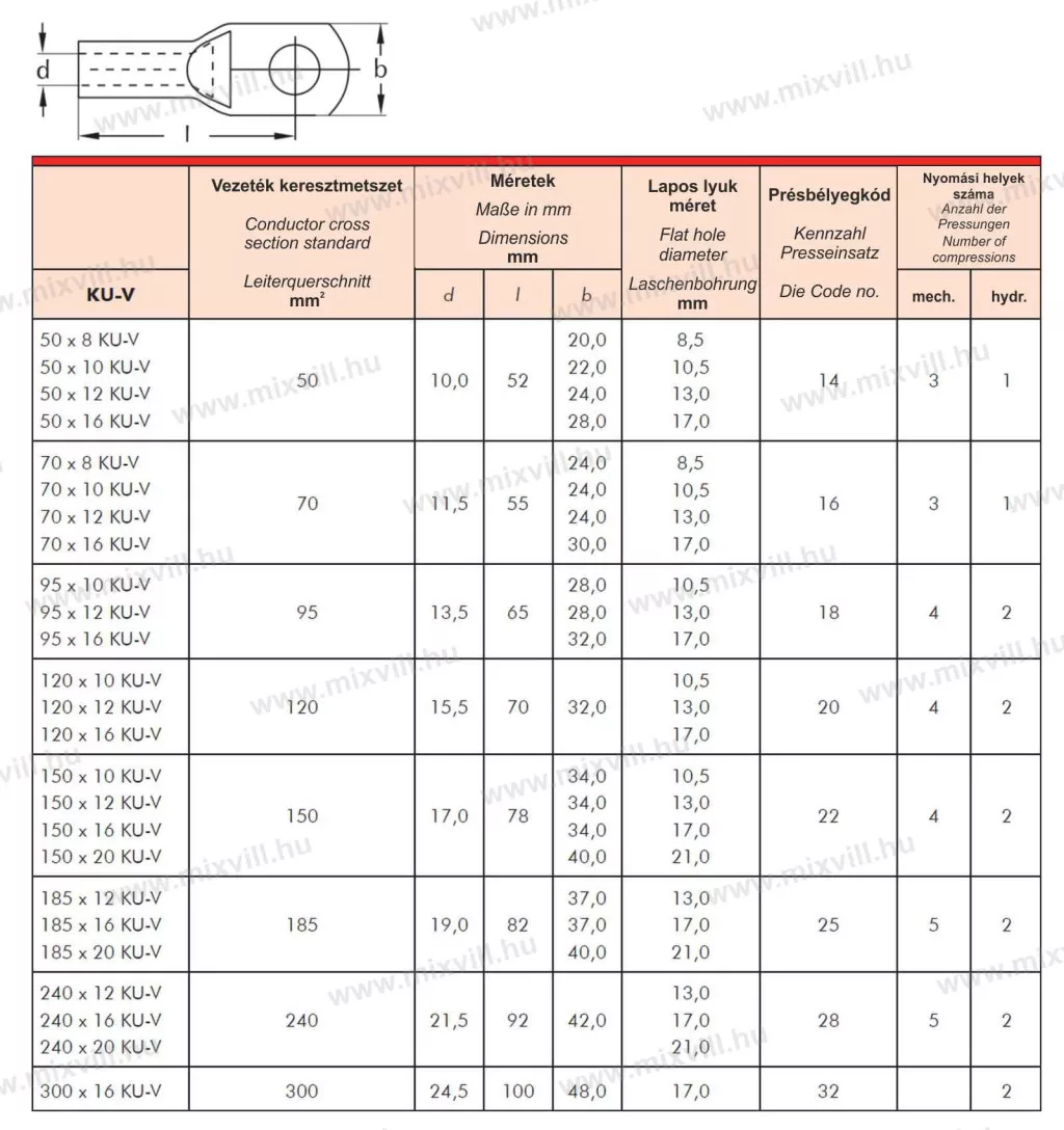 GPH KU-V 95-10 DIN 46235 ónozott réz kábelsaru 95mm2 10-es furattal