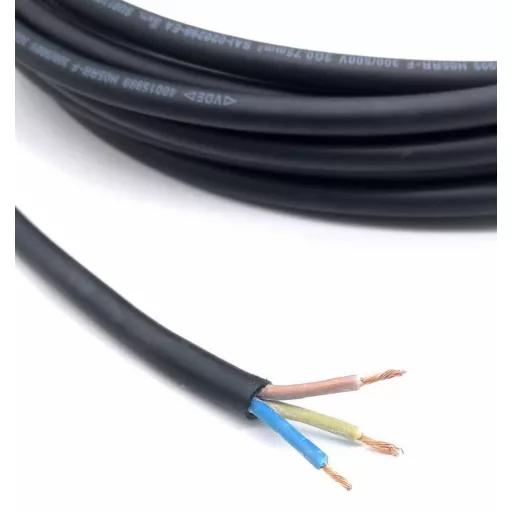 A H07RN-F egy rugalmas, gumiköpenyű ipari kábel, amelyet 450/750V névleges feszültségre terveztek. Kiválóan használható kültéri, nedves és ipari környezetben, ahol fontos az olaj-, UV- és mechanikai ellenállás. A vezető finomszálas rézből készül, szigetelése EPR gumi, köpenye pedig neoprén alapú.