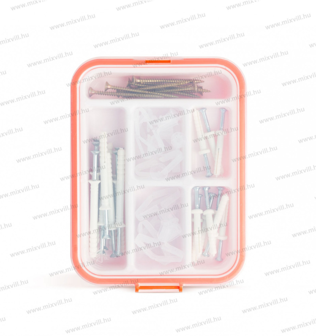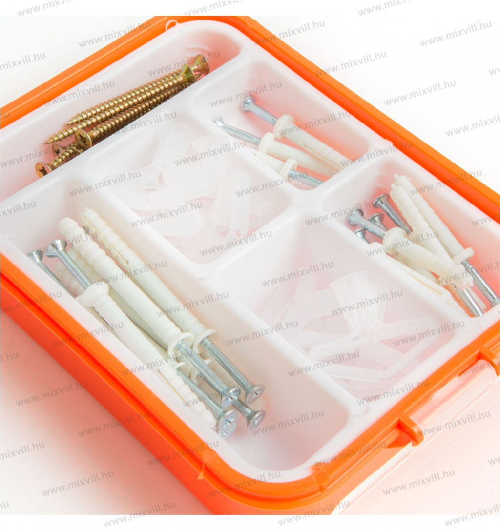 Ön is a barkácsolás szerelmese? Vagy csak a háztartás körüli teendőkre korlátozódik szenvedélye? Ebben a csavar/tipli szettben nem fog csalódni. Használhatja bármilyen falazat esetén rögzítési célra, akár képek, polcok, konzolok felszerelésére is alkalmas. A praktikus átlátszó doboztető nagyfokú áttekinthetőséget biztosít.