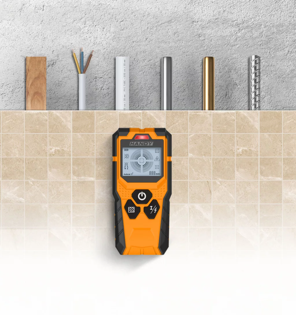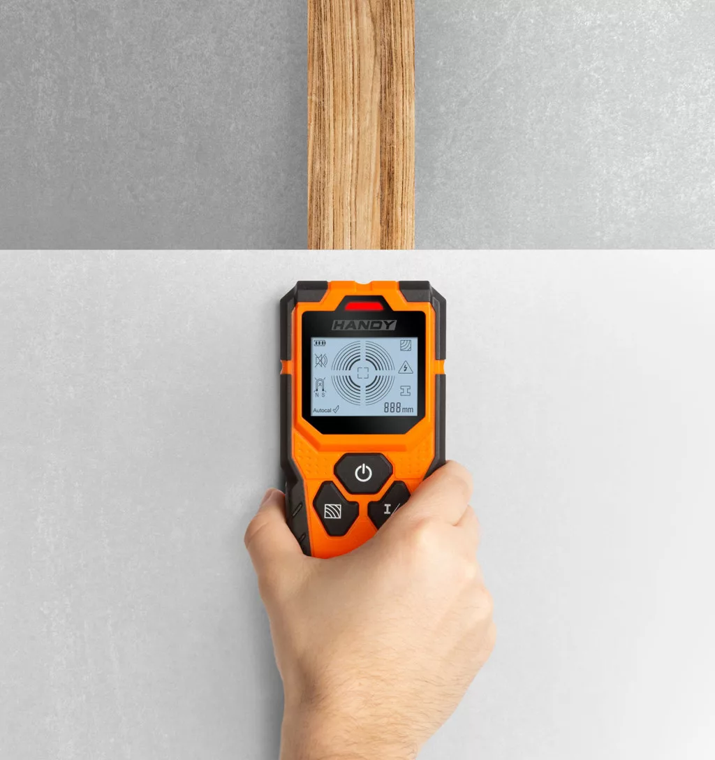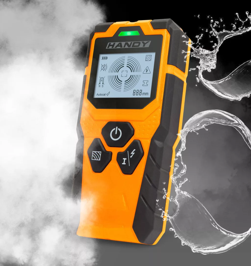 Handy 10040 digitális multifunkciós detektor, amely fém, fa és áramkábelek helyét jelzi ki falban. Nagyméretű kijelzővel, IP54 védelemmel, hordtáskával. Érzékelési mélység vas esetén akár 10 cm.