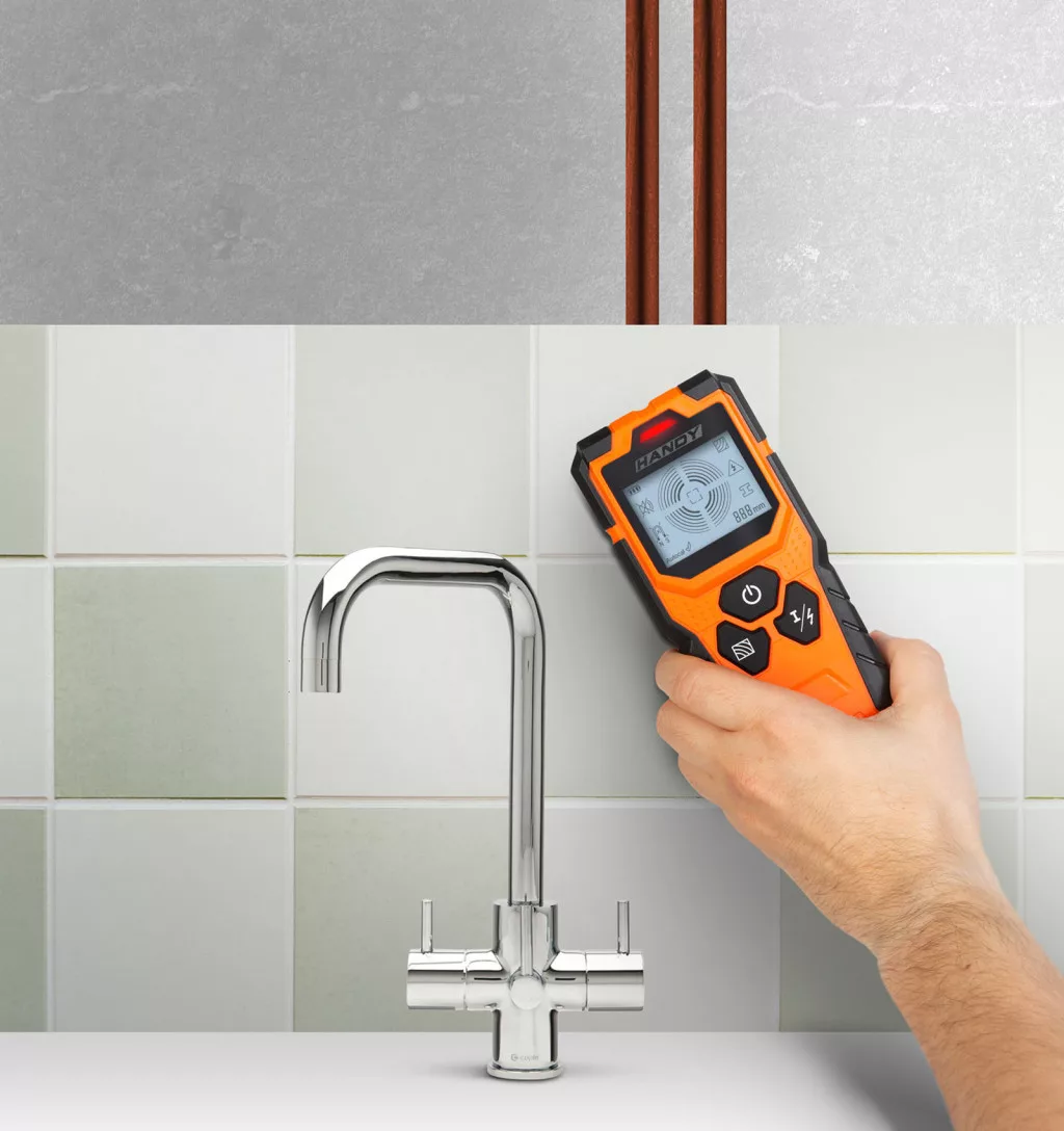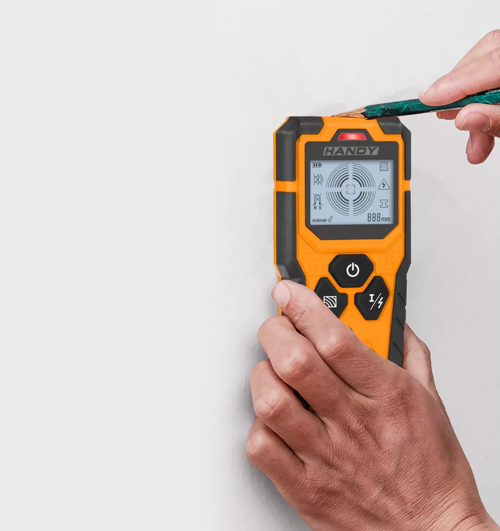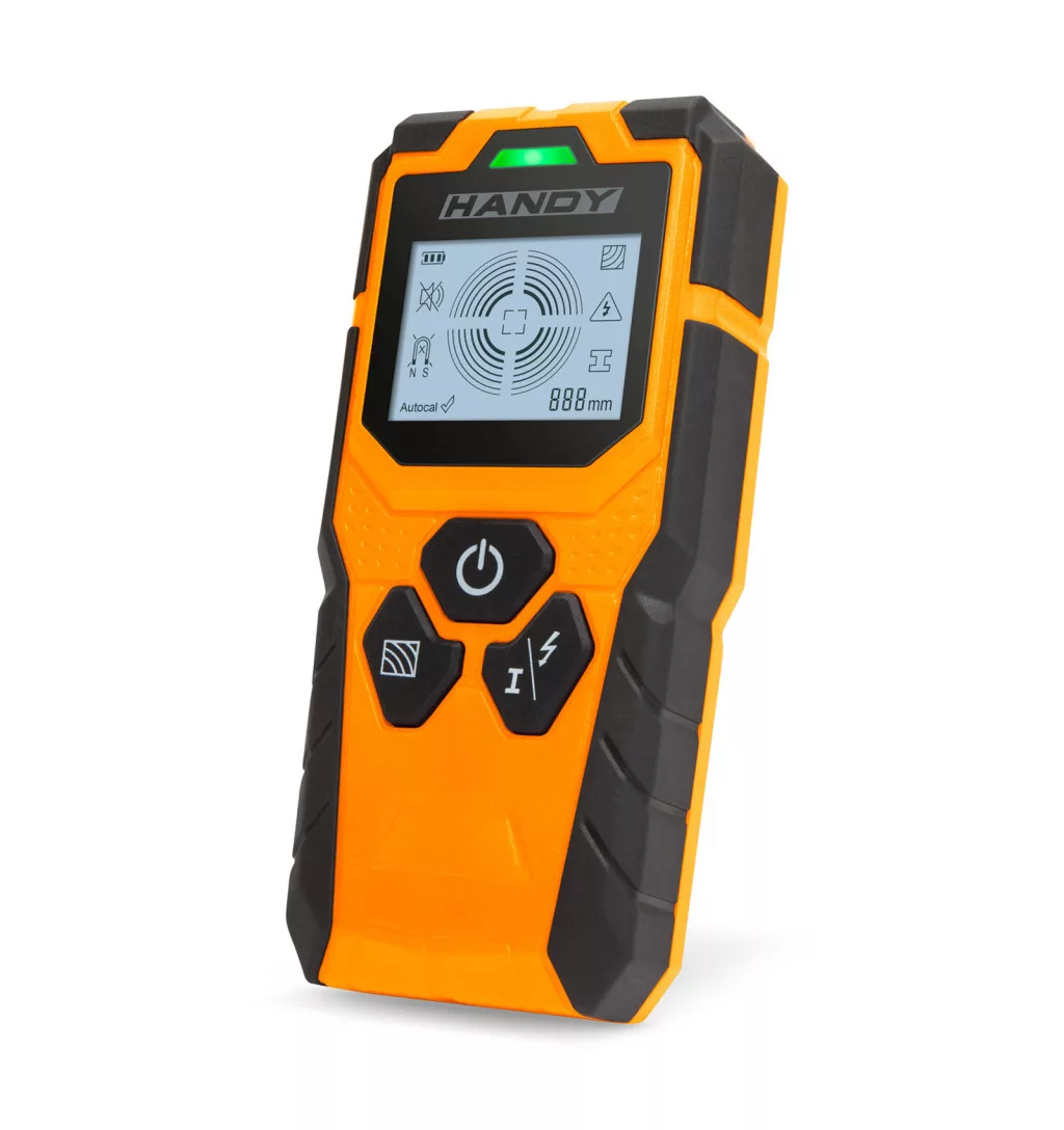 Handy 10040 digitális multifunkciós detektor, amely fém, fa és áramkábelek helyét jelzi ki falban. Nagyméretű kijelzővel, IP54 védelemmel, hordtáskával. Érzékelési mélység vas esetén akár 10 cm.