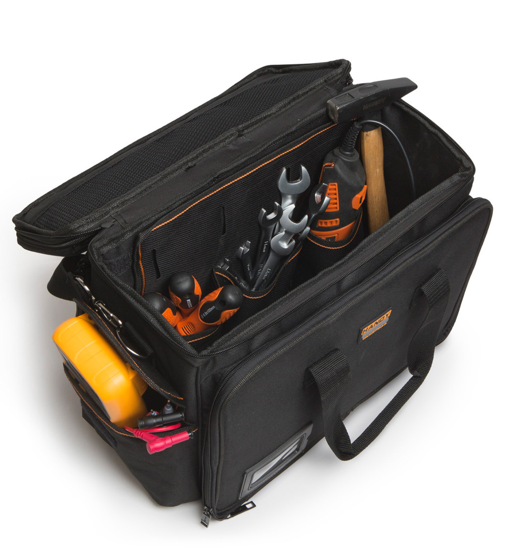 A Handy 10241 merevfalú, multifunkciós táska ideális választás szerszámos, fotós vagy akár utazótáskaként történő használatra. Nagy belső tere és praktikus rekeszei biztosítják a rendezett és kényelmes tárolást, míg a strapabíró poliészter anyag hosszú élettartamot garantál.