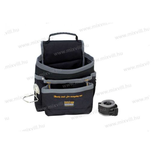- Több zsebbel, illetve az oldalán fém akasztóval rendelkező szerszámtartó öv