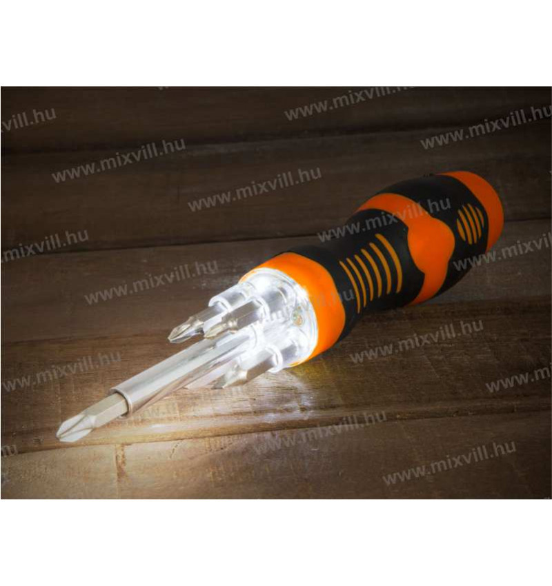 A 4 darab beépített nagy fényerejű lednek köszönhetően sötétben is tudja használni az ergonomikus és csúszásmentes markolattal ellátott kézi csavarhúzót, amely egyidejűleg 5 bitfejet tud tárolni.