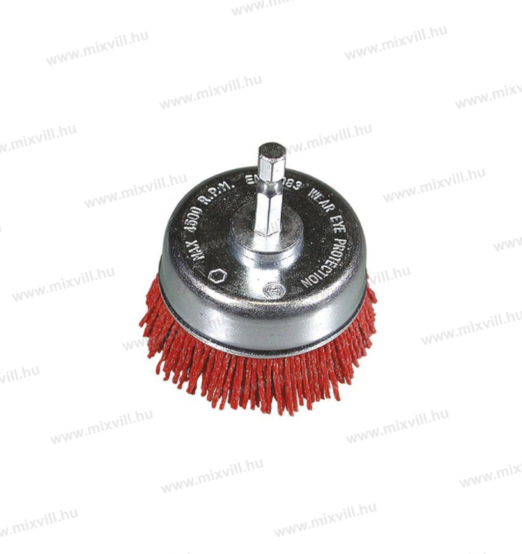 Száras fazékkefe nejlon huzalszál korund csiszolóanyaggal, fúrógépekhez, hatlapú befogással