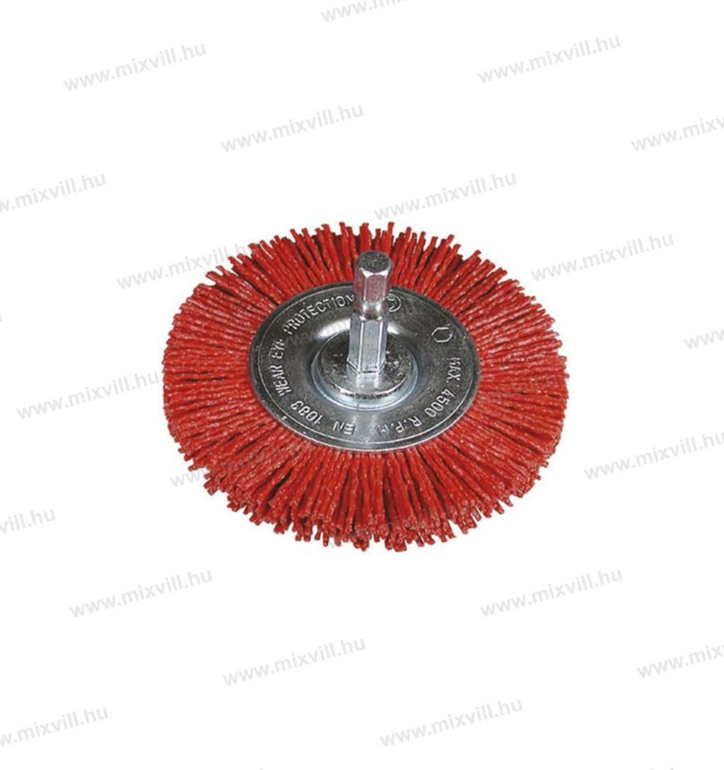 Száras korongkefe nejlon huzalszál korund csiszolóanyaggal, fúrógépekhez, hatlapú befogással