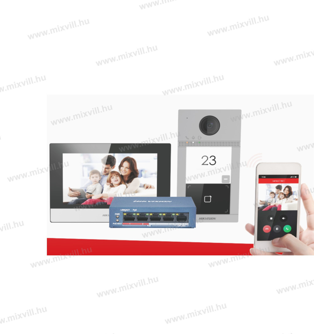 A szett tartalma : DS-KV8113-WME1 + DS-KH6320-WTE1 + PoE switch + 16GB microSD