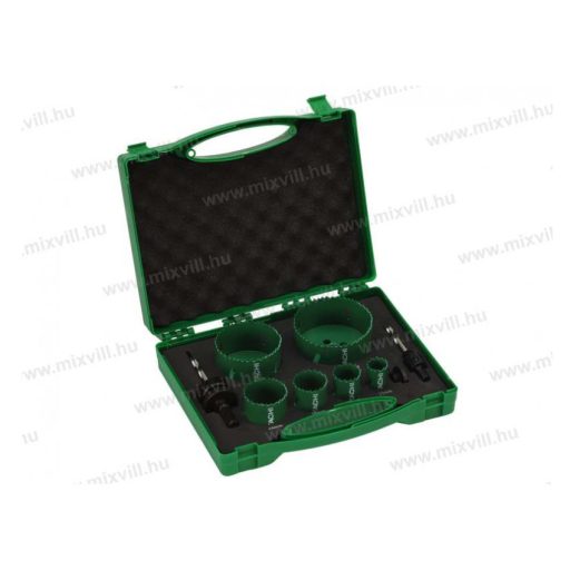 A Hitachi HSS- bimetál II./2. körkivágó készlet alkalmas, különböző acélöntvényekhez, szerkezeti acélokhoz, alumínium és rézötvözetekhez fa, műanyag és gipszkarton megmunkálásához.